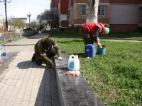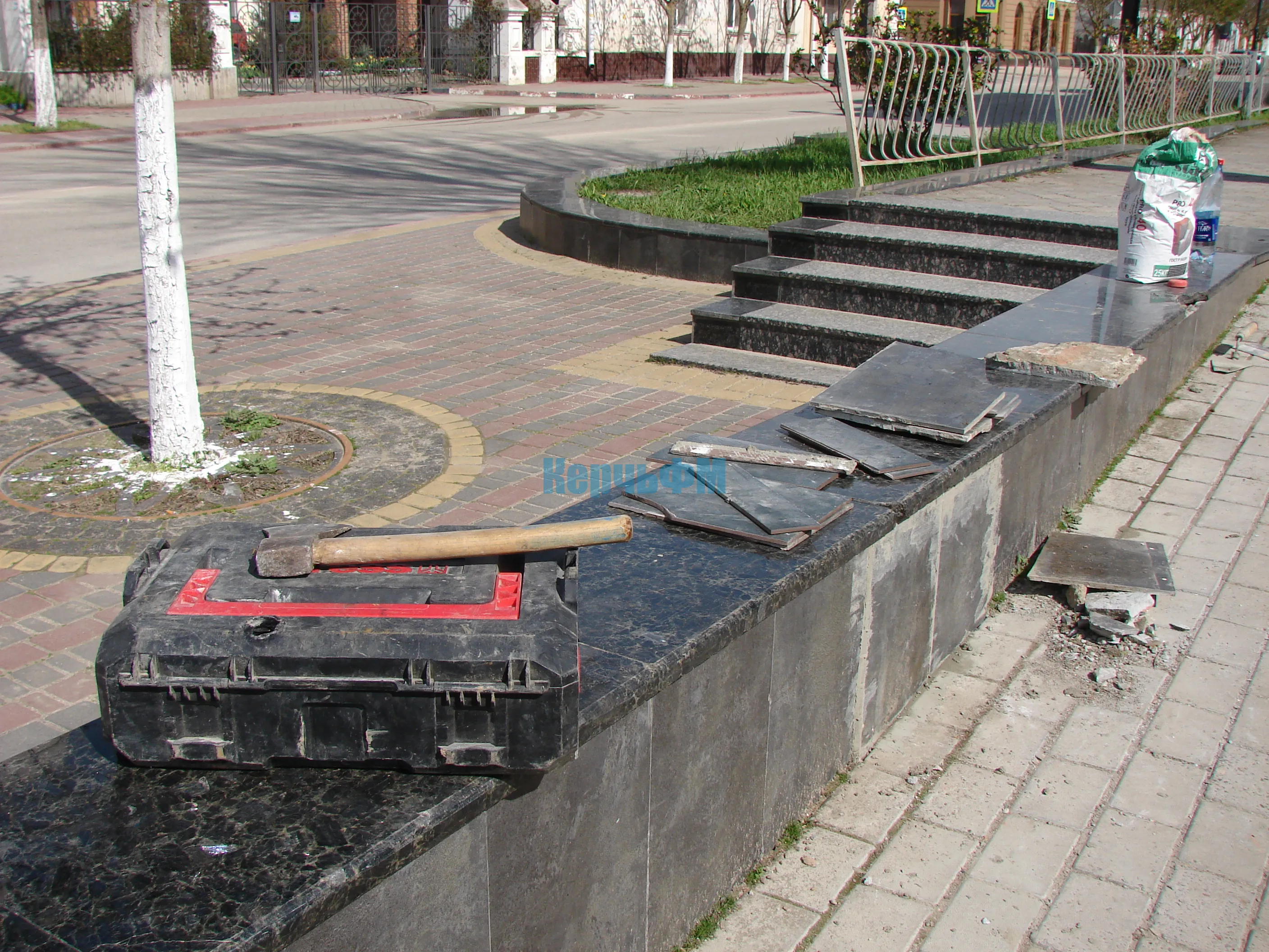 Специалисты Службы городского хозяйства сегодня с утра восстанавливали облицовку подпорной стены и работы к вечеру завершили.