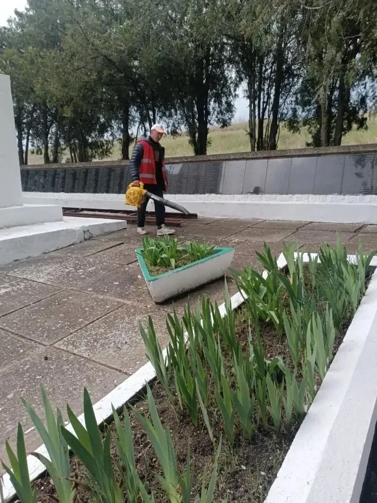 В преддверии знаменательного для Керчи Дня освобождения города от фашистских захватчиков коммунальные службы очищают мемориалы и памятные места, посвященные героям ВОВ.