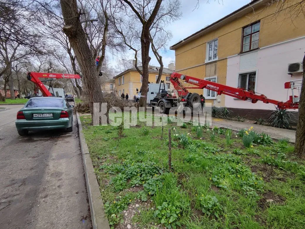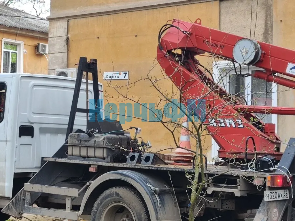 Керченские энергетики сегодня восстанавливали провода у домов по Сакко, 5 и 7