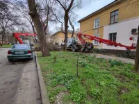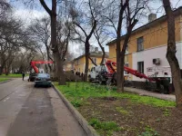 В районе домов по Сакко, 5 и 7 Служба городского хозяйства провела спил ветвей высоких деревьев.