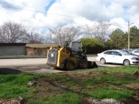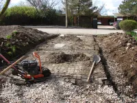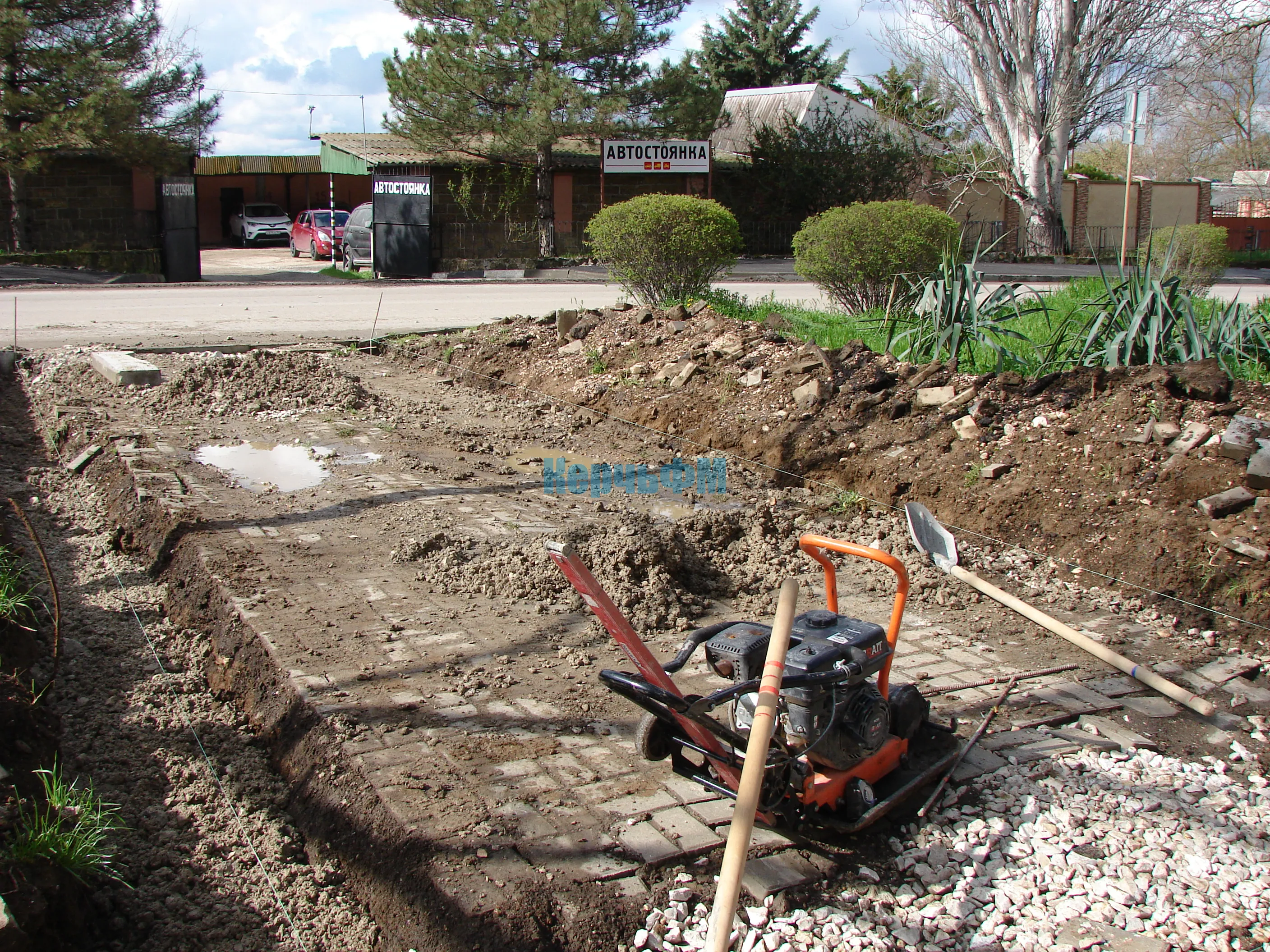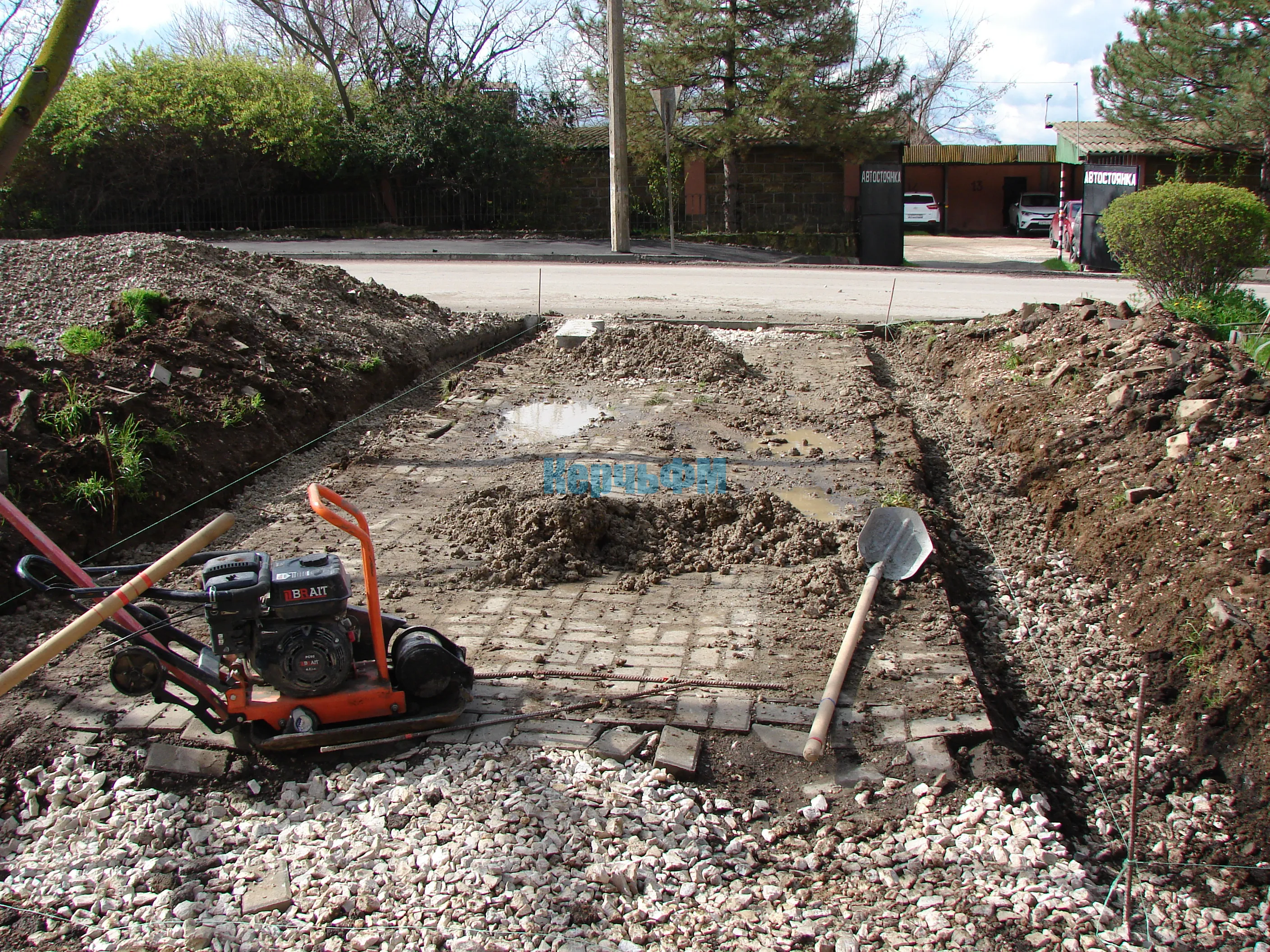 По бокам тротуара предварительно была демонтирована старая плитка.