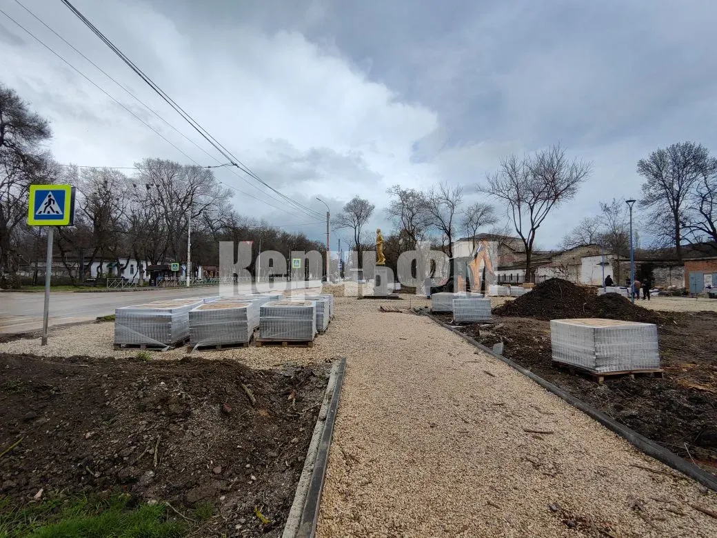 Продолжается обустройство тротуара на стороне храма и готова под укладку плитки территория со стороны памятника П. Войкову, передает КерчьФМ.