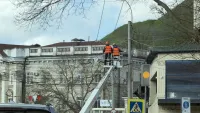 Специалисты занимаются заменой кабеля.