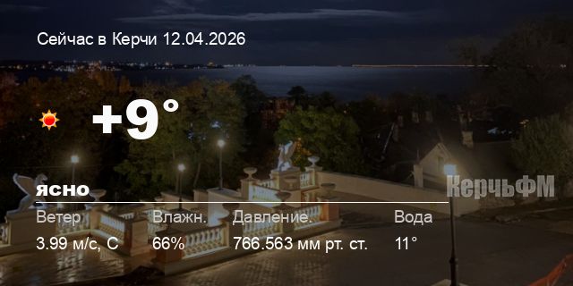 Сегодня днем в Керчи, 12 апреля, ожидается ясная погода, температура воздуха от +5.4° до +10.4°С, ветер северный 4.9 м/с, порывы до 2.67 м/с, давление 766.6 мм рт. ст., влажность 62%.