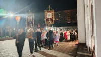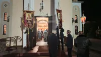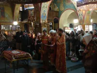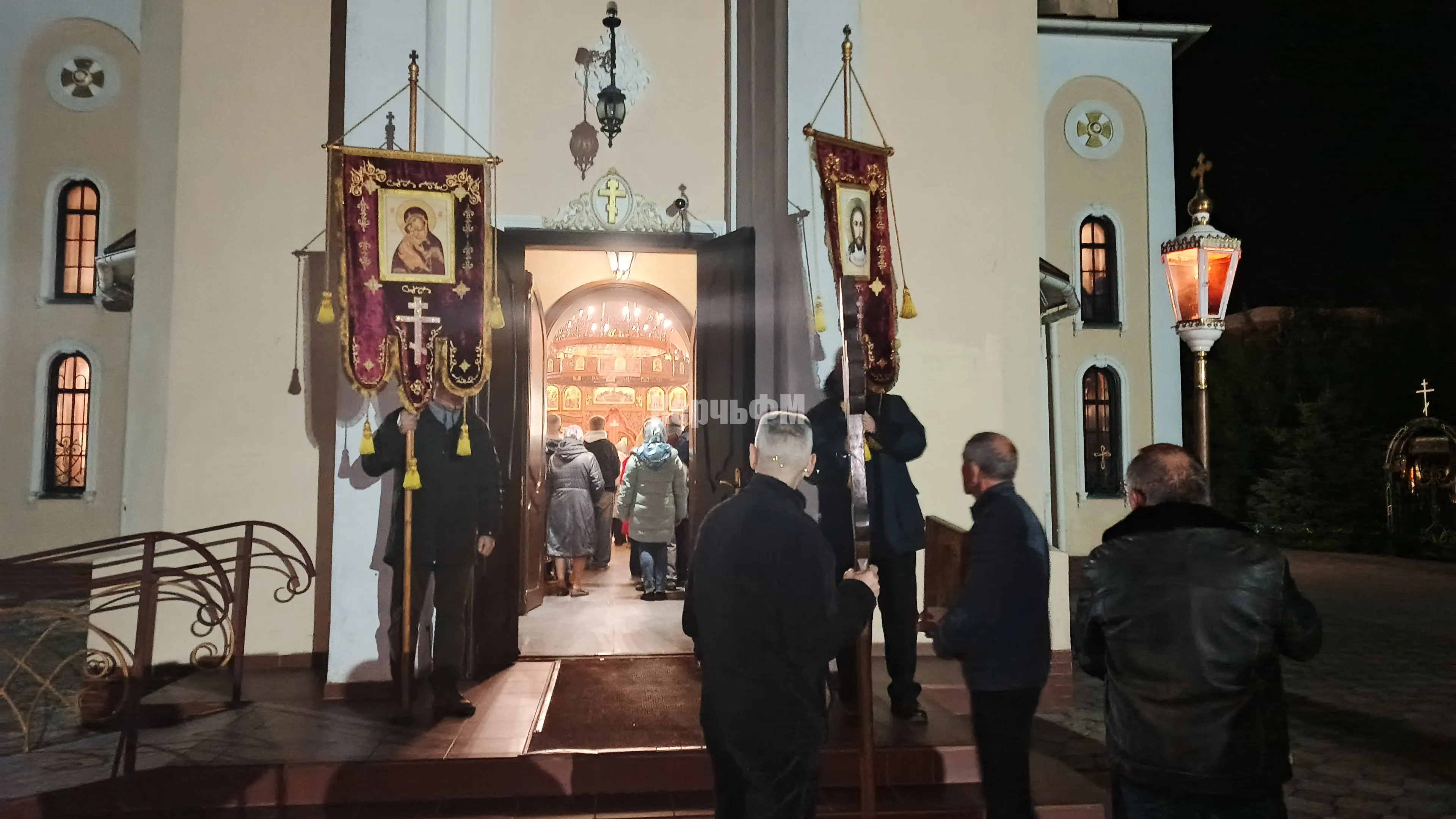 Служба началась с полунощницы, после чего под звон колоколов был совершен крестный ход, за которым последовали утреня и Божественная литургия.