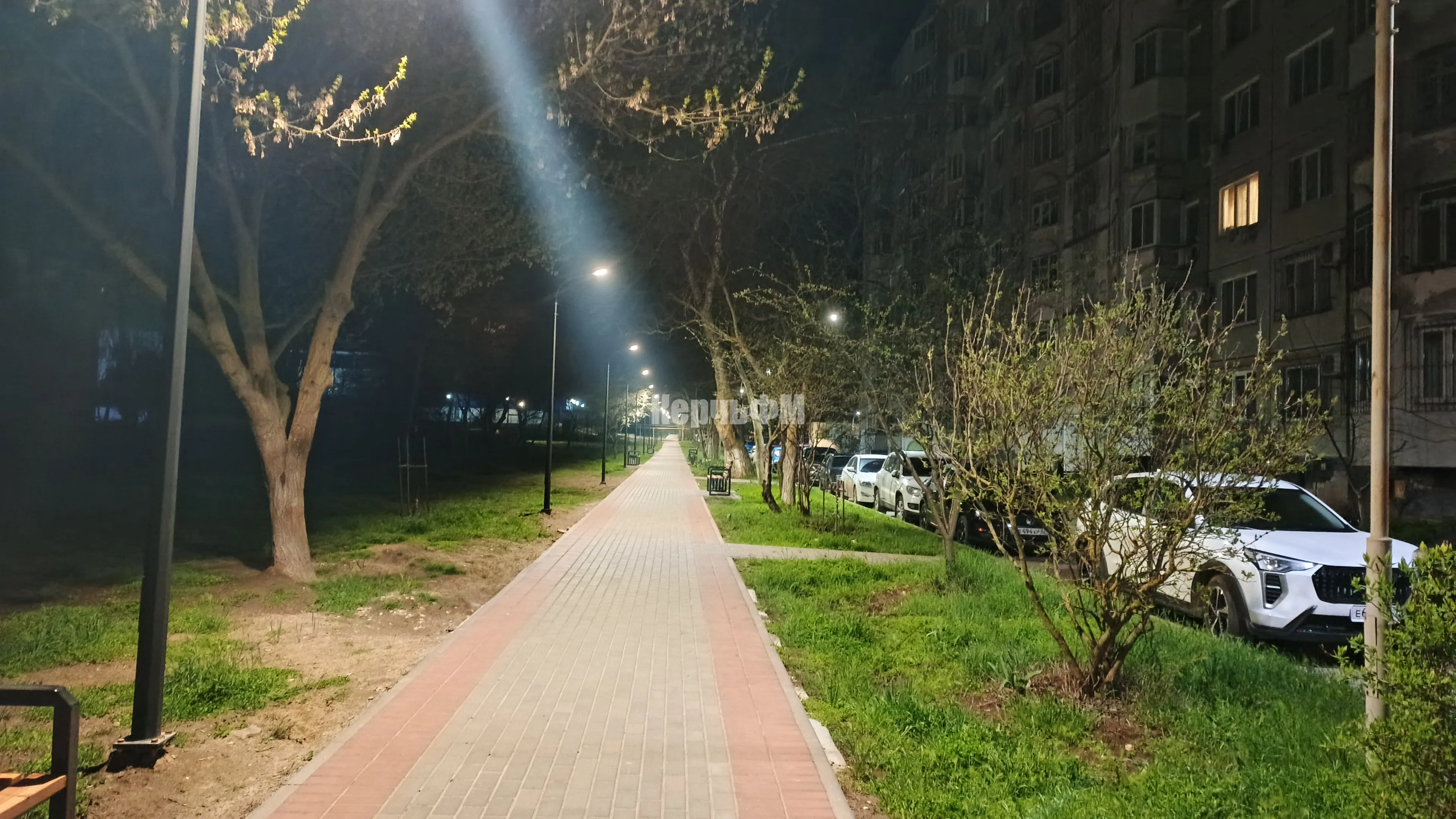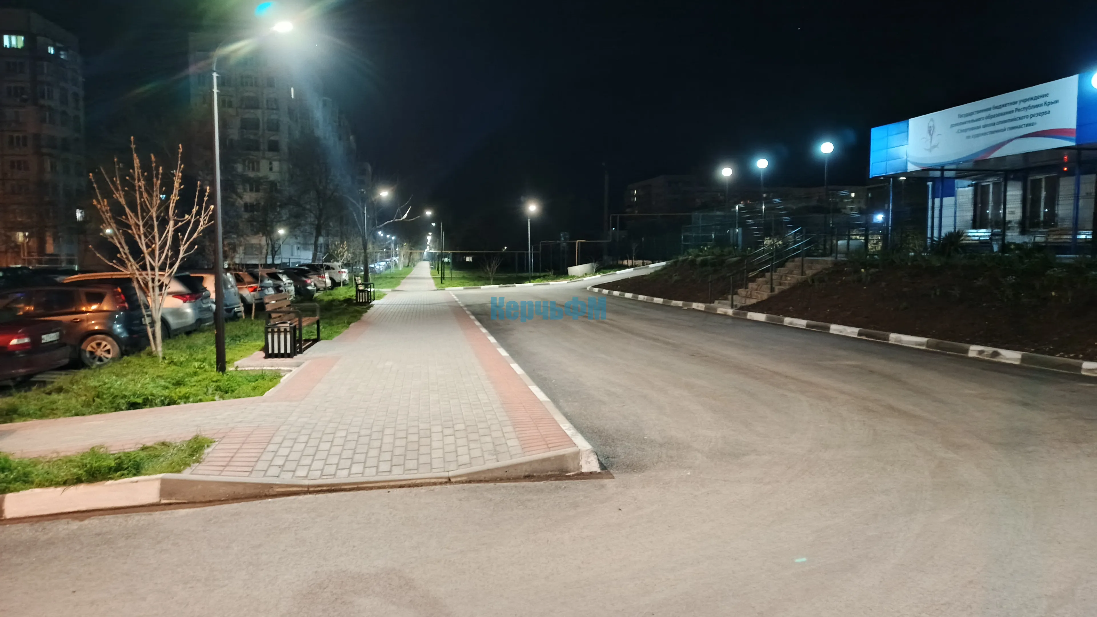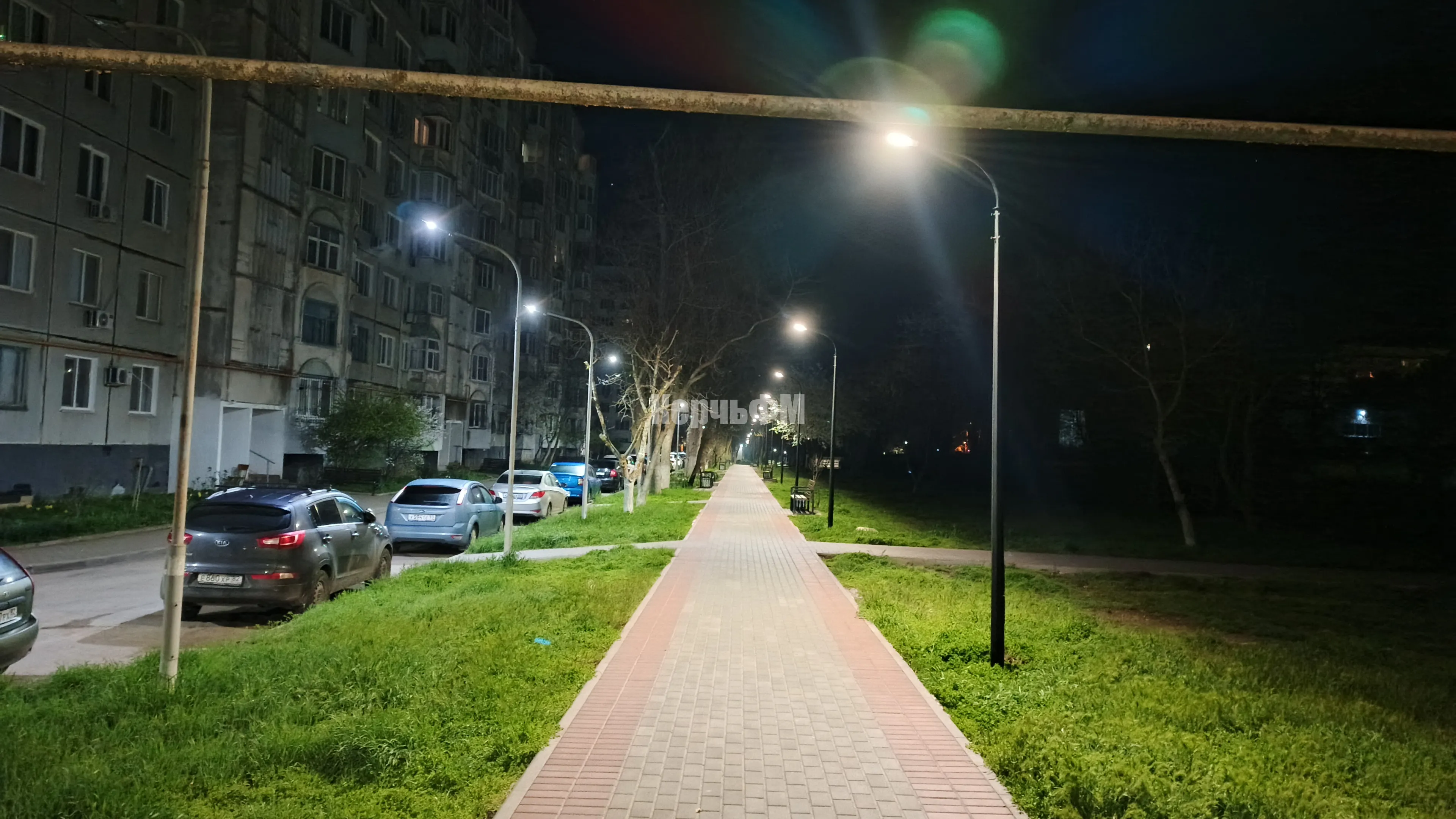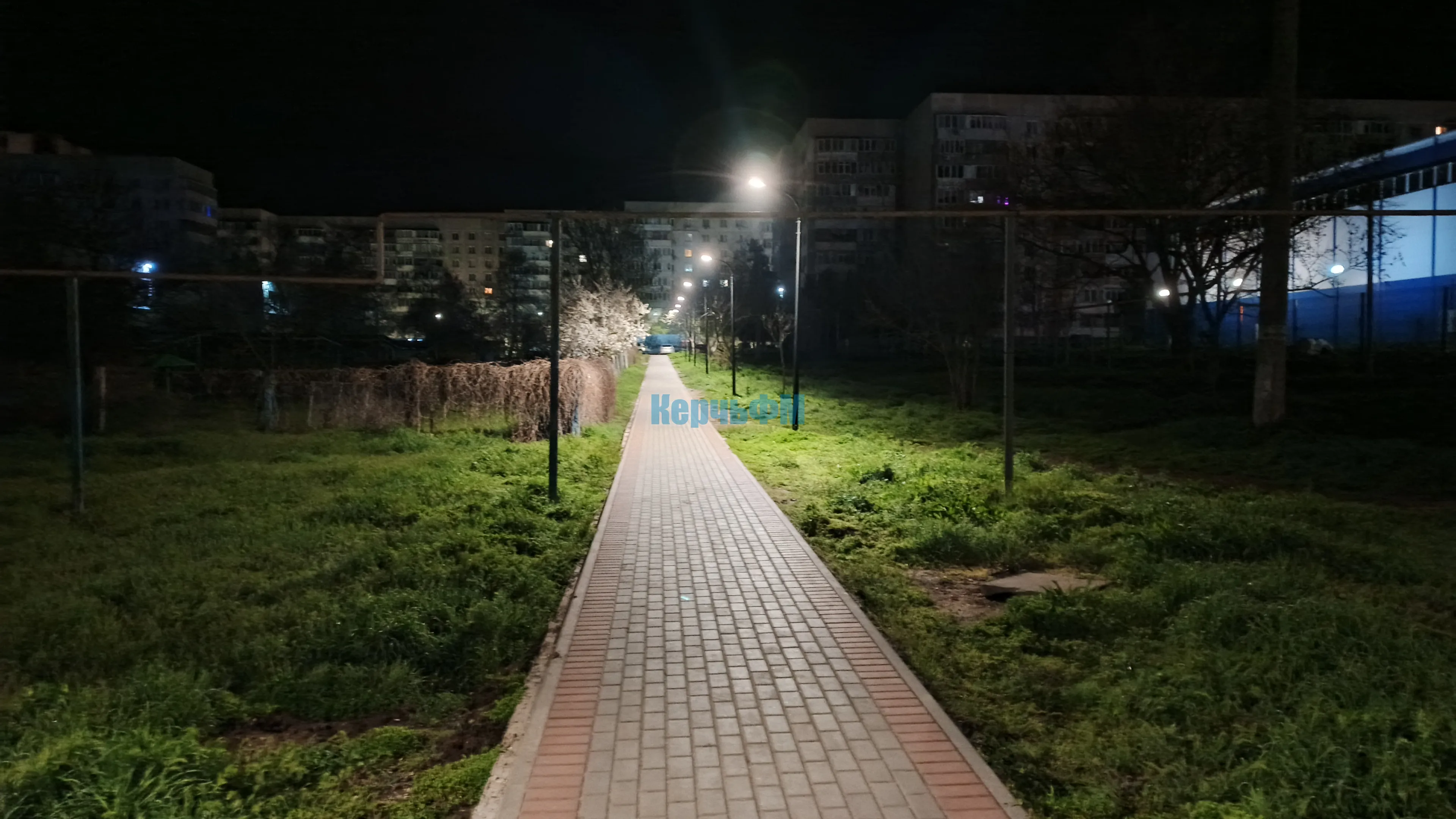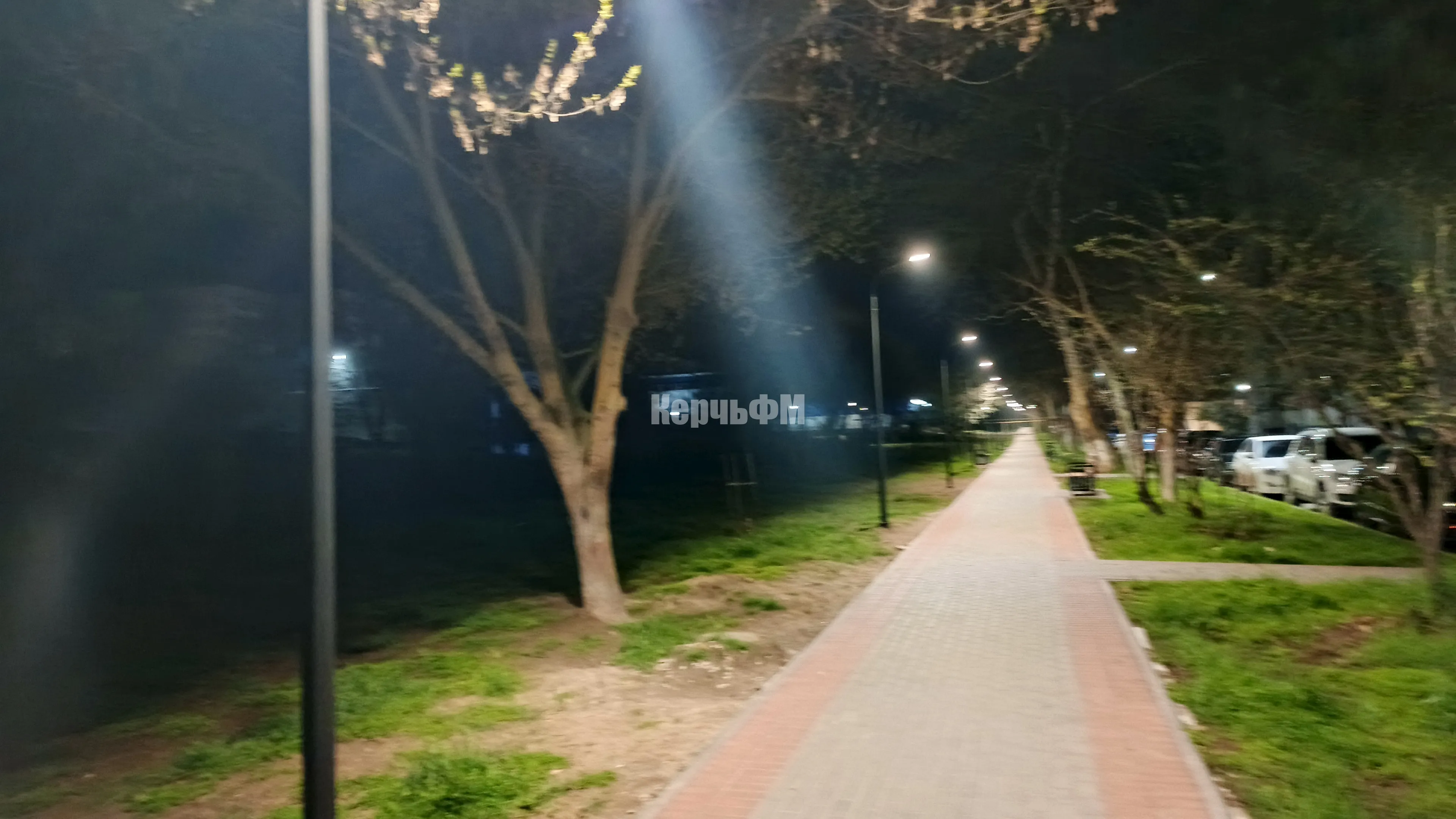 Пасхальная ночь и ярко освещенная аллея от 26-ой школы к храму в Керчи