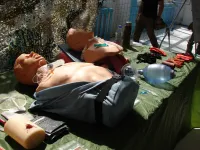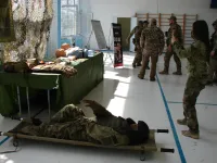 Отдельной площадкой стала зона обучения тактической медицины, где ребятам продемонстрировали все стадии оказания первой доврачебной помощи раненым.