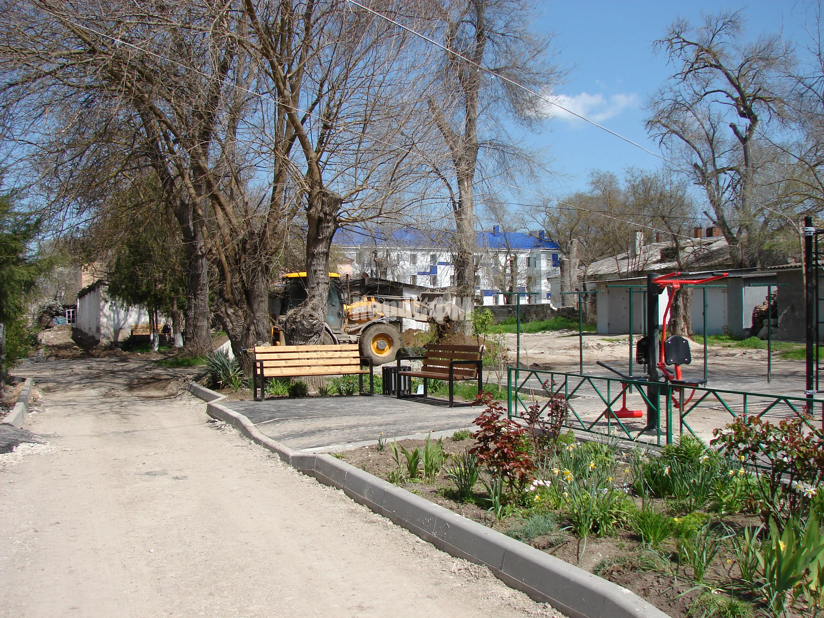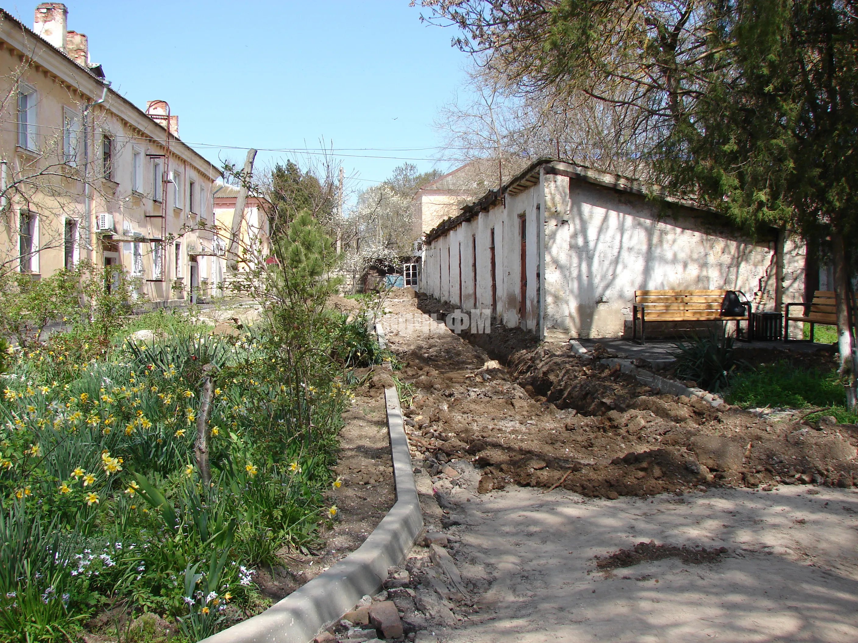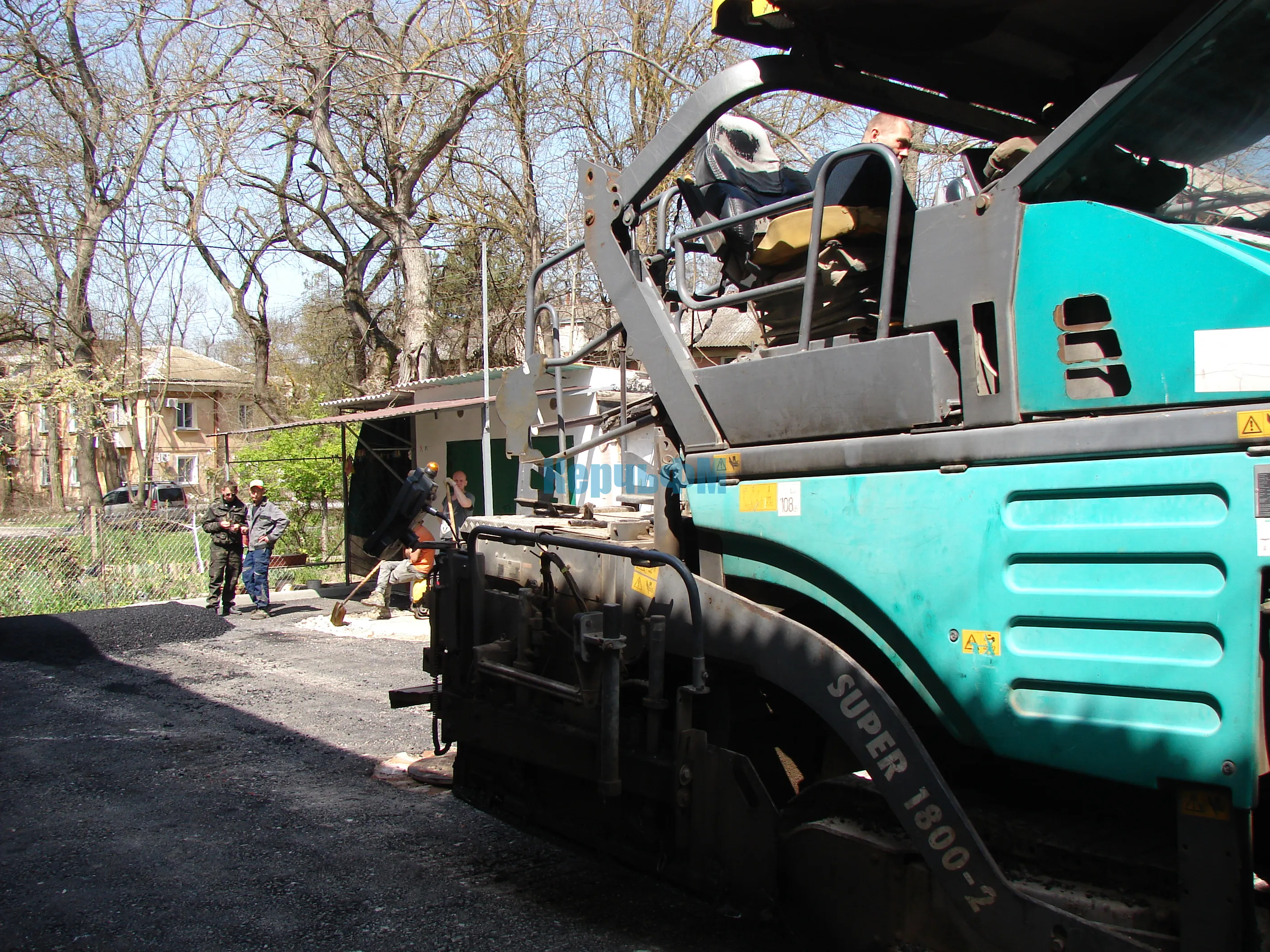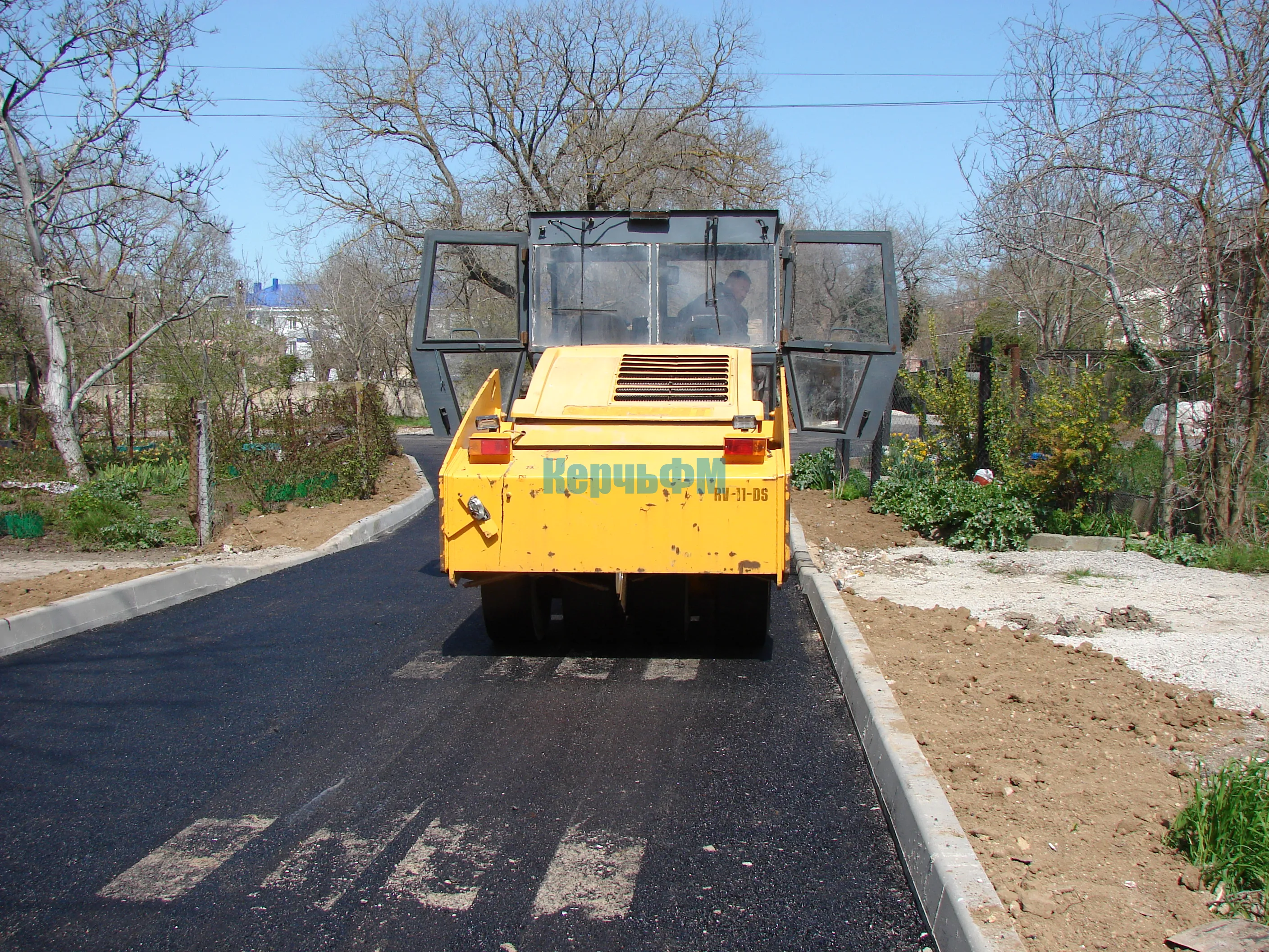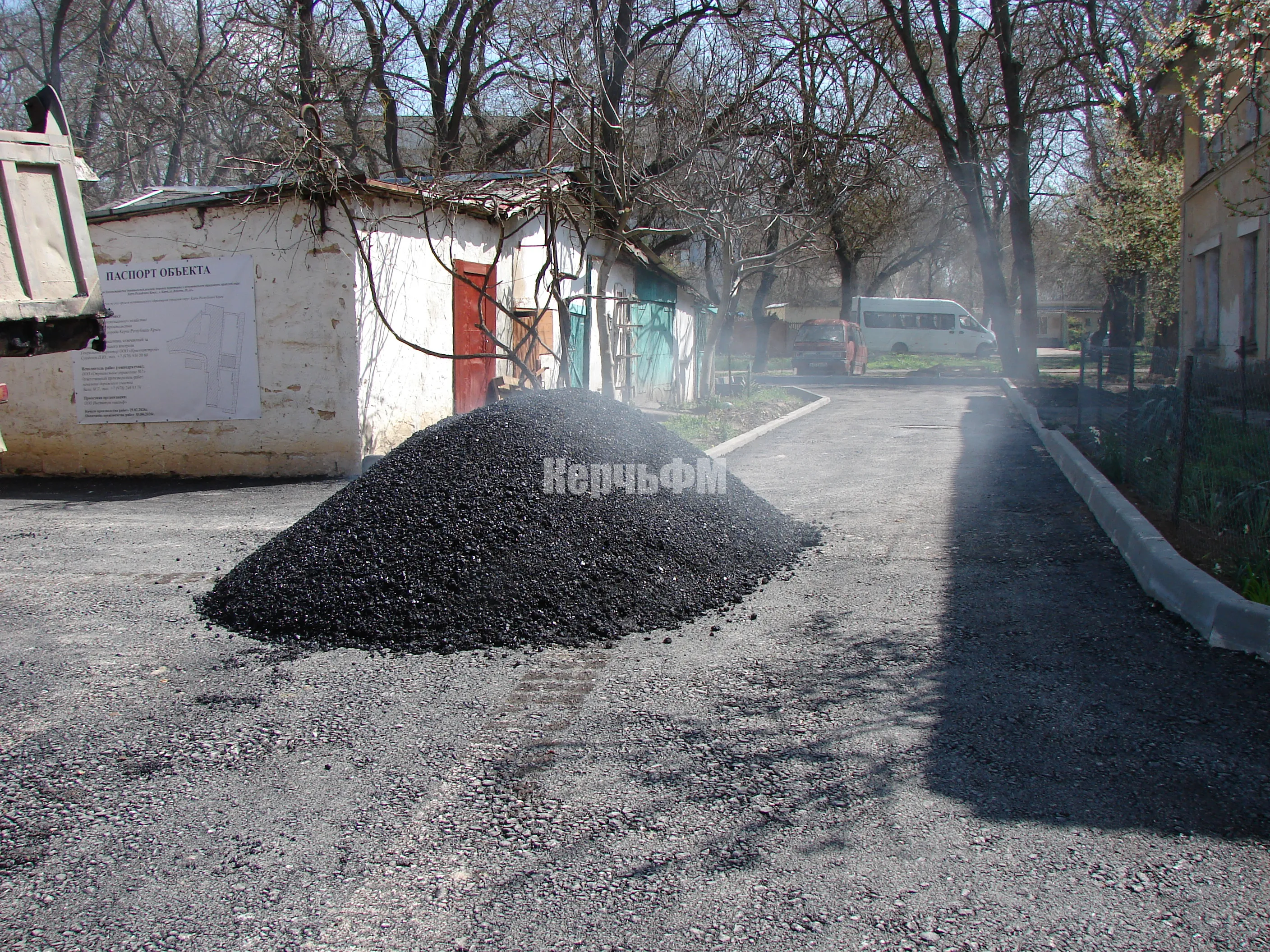 Во дворах по Войкова, 20, 22, Энгельса, 26 в Керчи укладывают второй слой асфальта