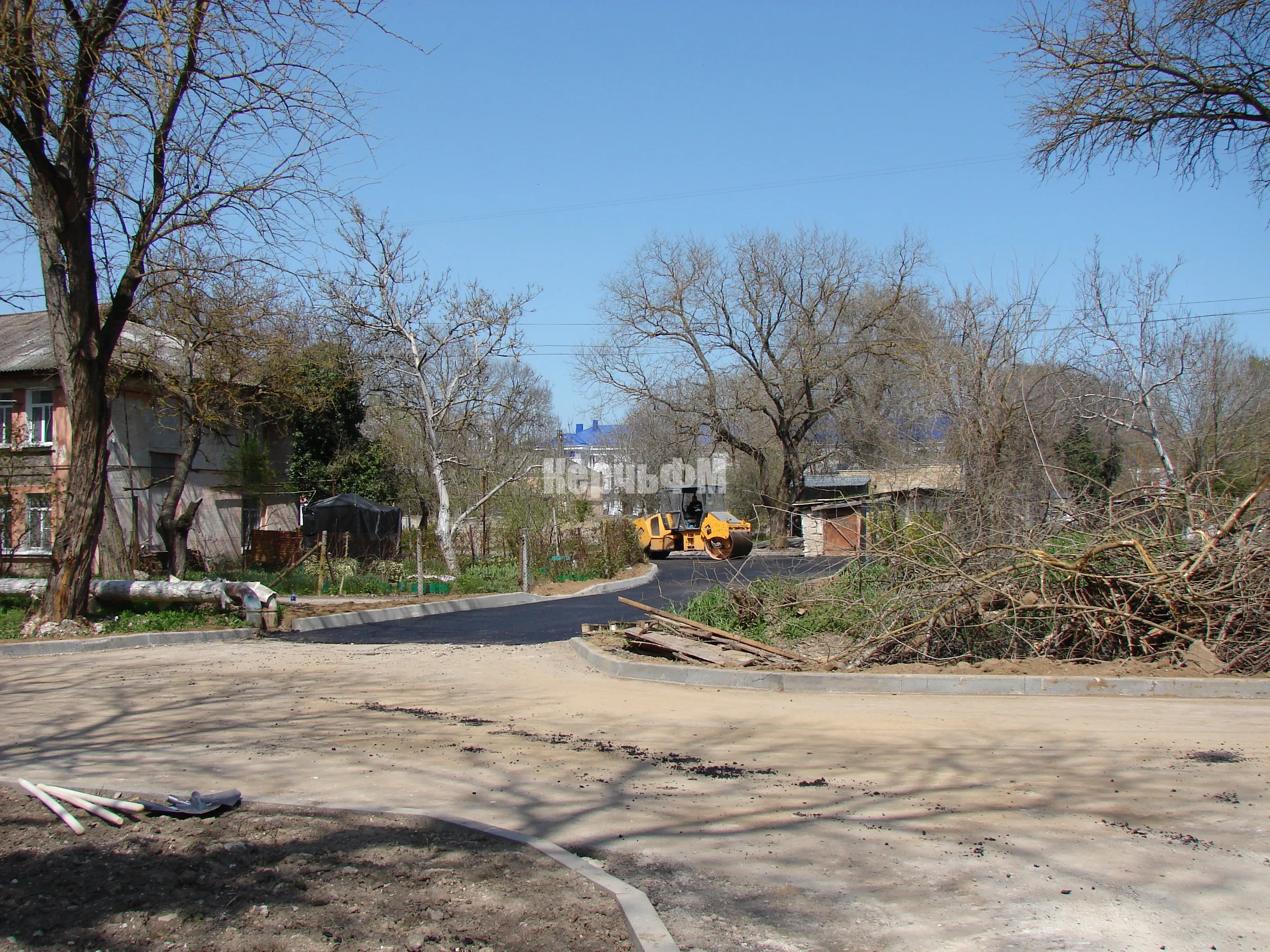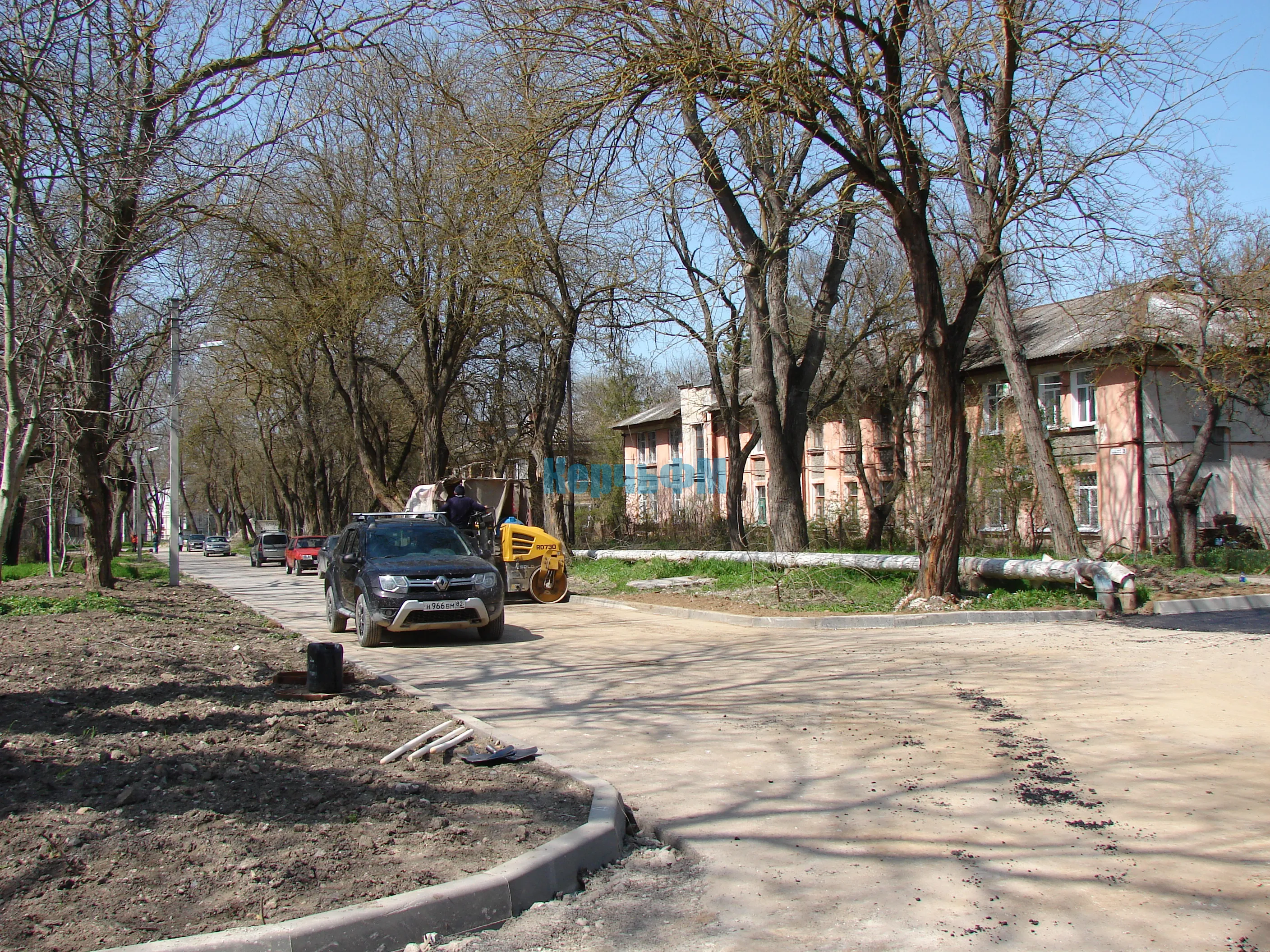 Сегодня подрядная организация "СУ-7" ведет укладку второго слоя асфальта во дворах и на заездах во дворы.