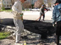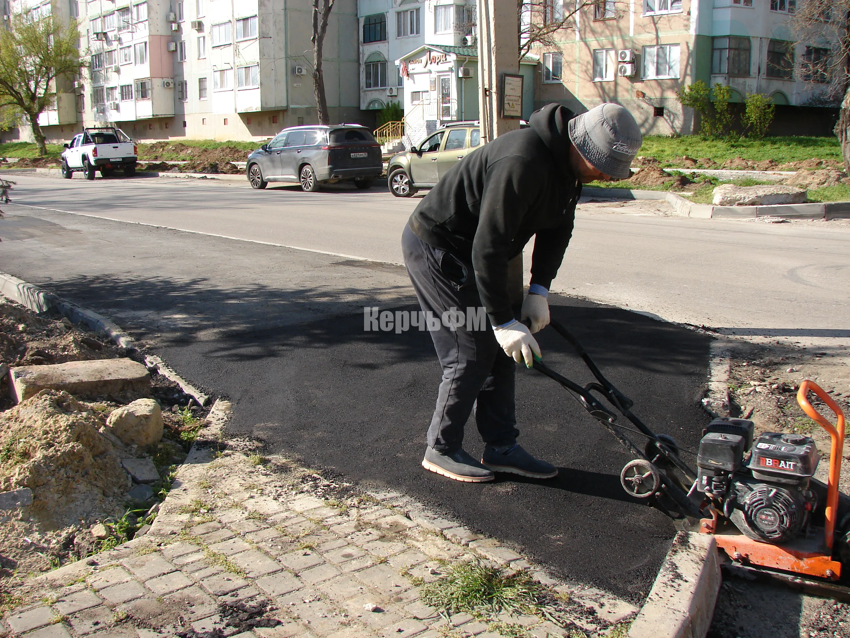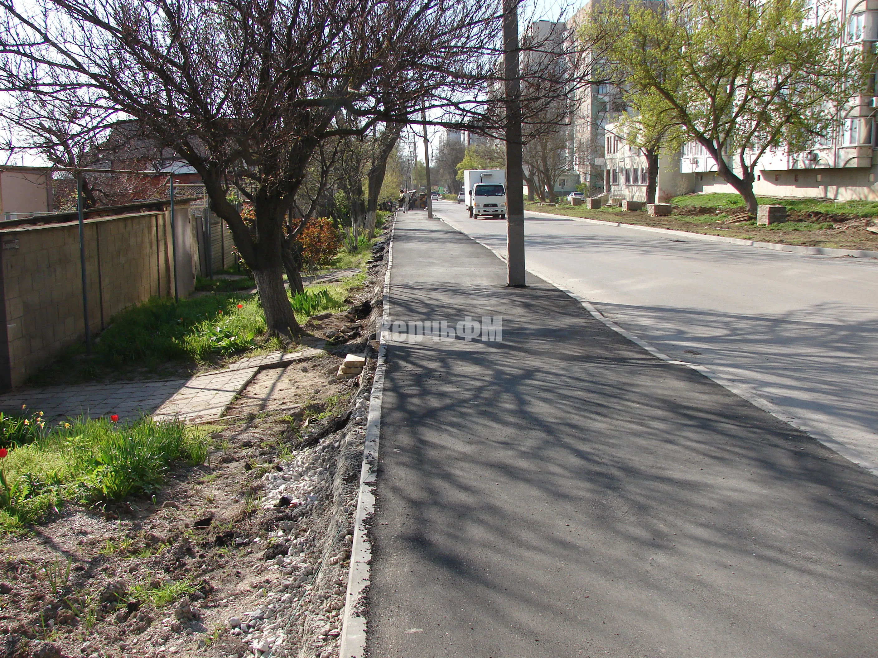 На Кирова в Керчи заканчивают асфальтировать новый тротуар