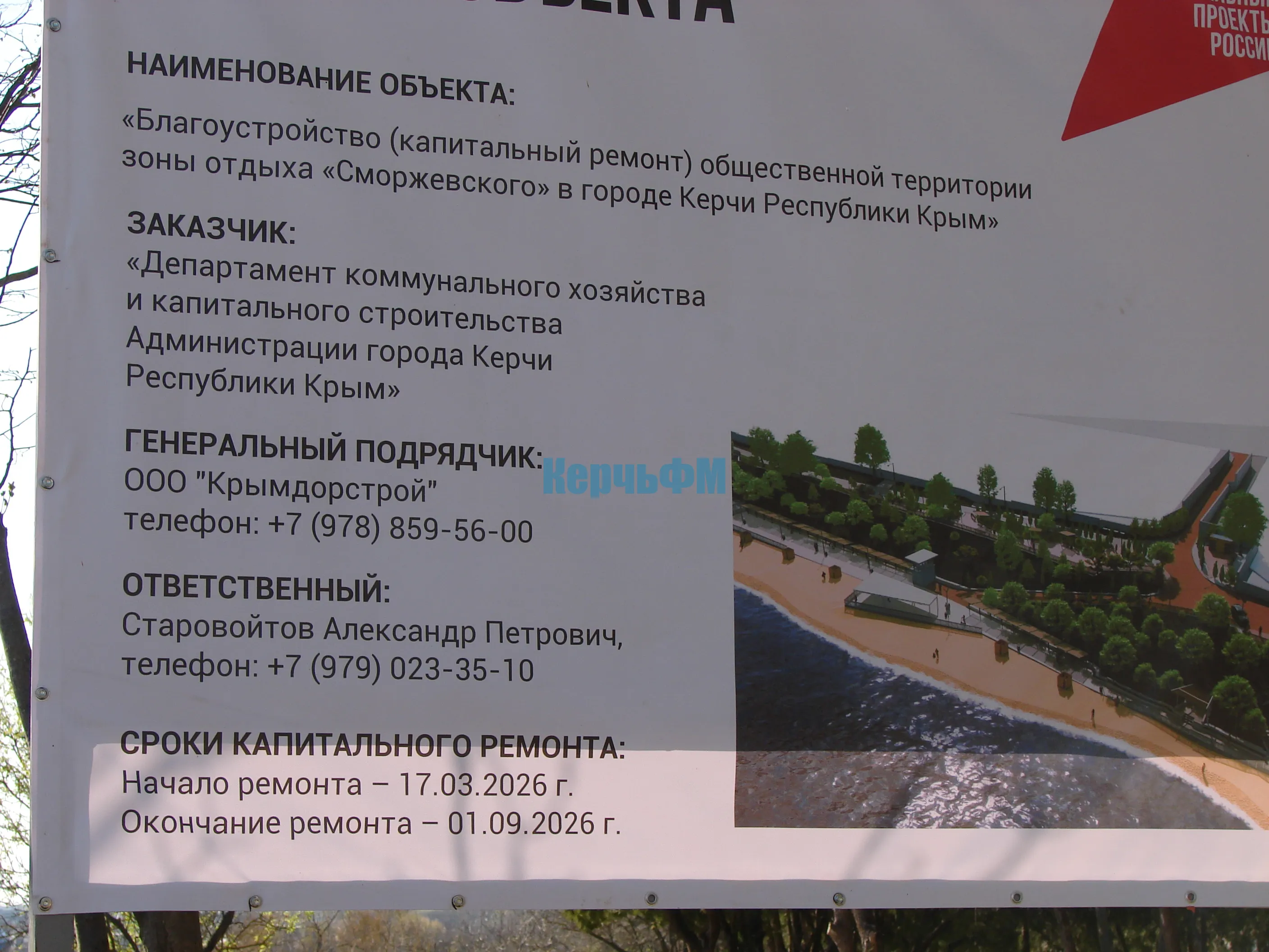 Между тем, на спуске установили паспорт объекта, где указаны сроки начала и окончания работ по капитальному благоустройству территории: 17.03.2026г.- 1.09.2026г.