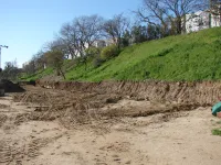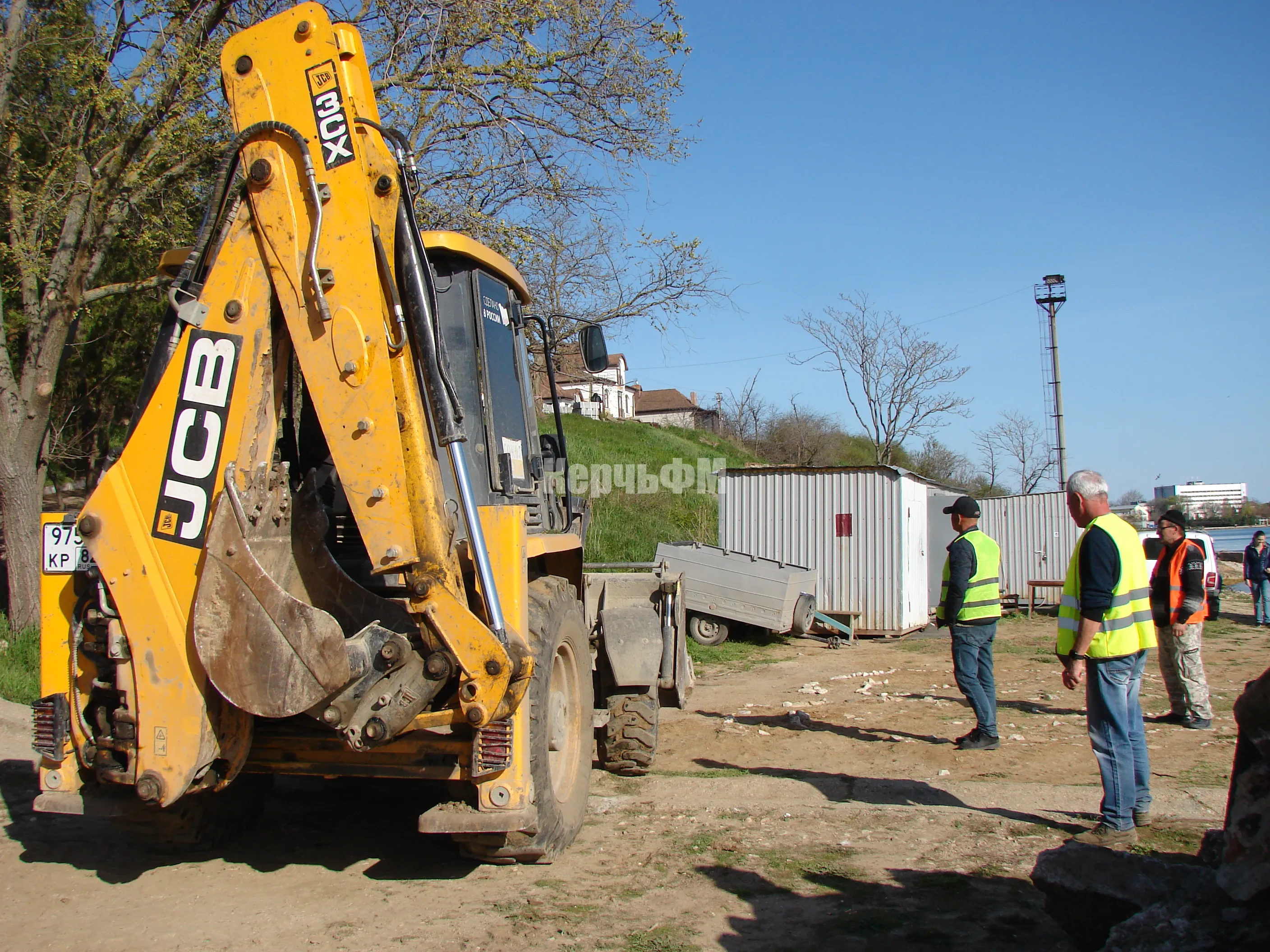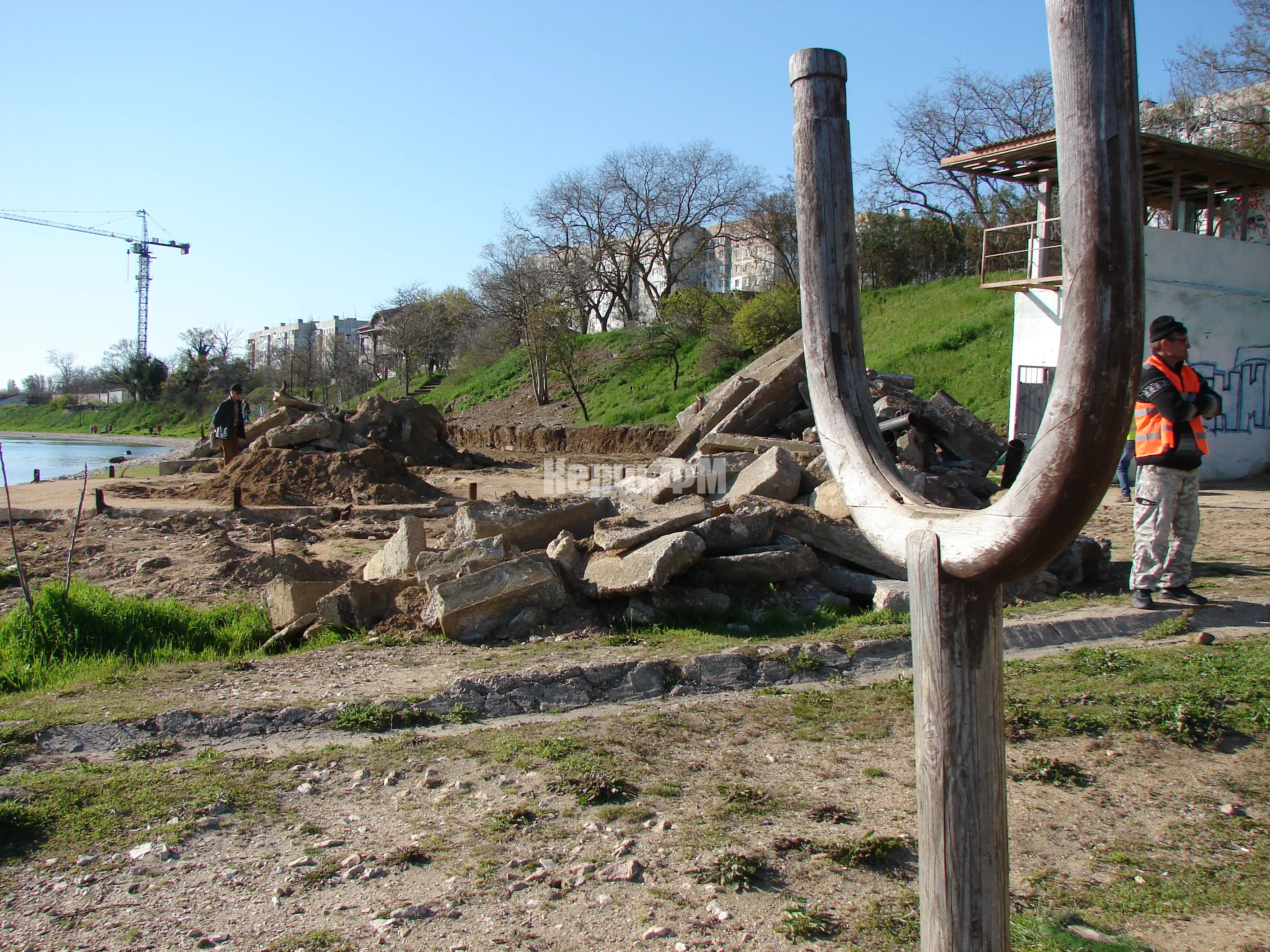 Внизу на пляже появились вагончики строителей, передает КерчьФМ.