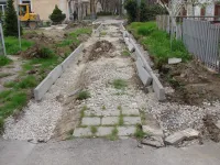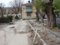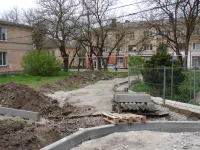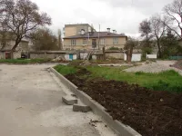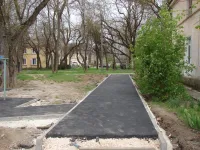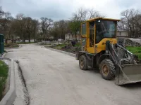 Сейчас внимание устроителей сосредоточено на обустройстве тротуаров и установке поребриков, как вдоль пешеходных дорожек, так и вдоль подъездных дорог, ведущих непосредственно к домам.