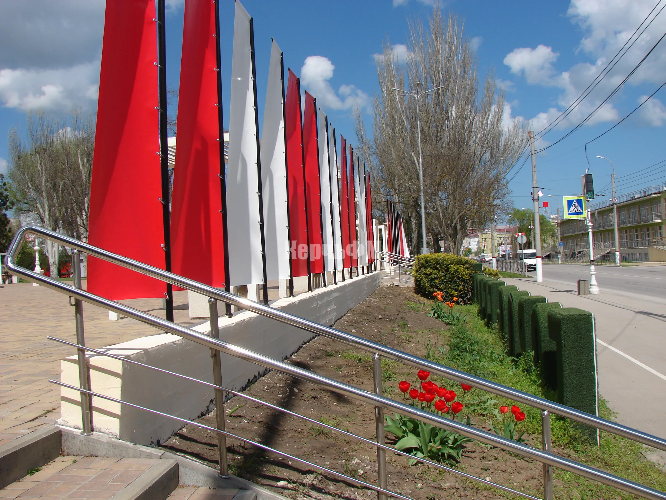 Напомним, инсталляцию «Город‑герой Керчь» оформили красно‑белыми полотнами в цветах городского флага перед 82-ой годовщиной освобождения Керчи от фашистских захватчиков.