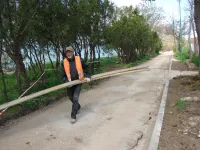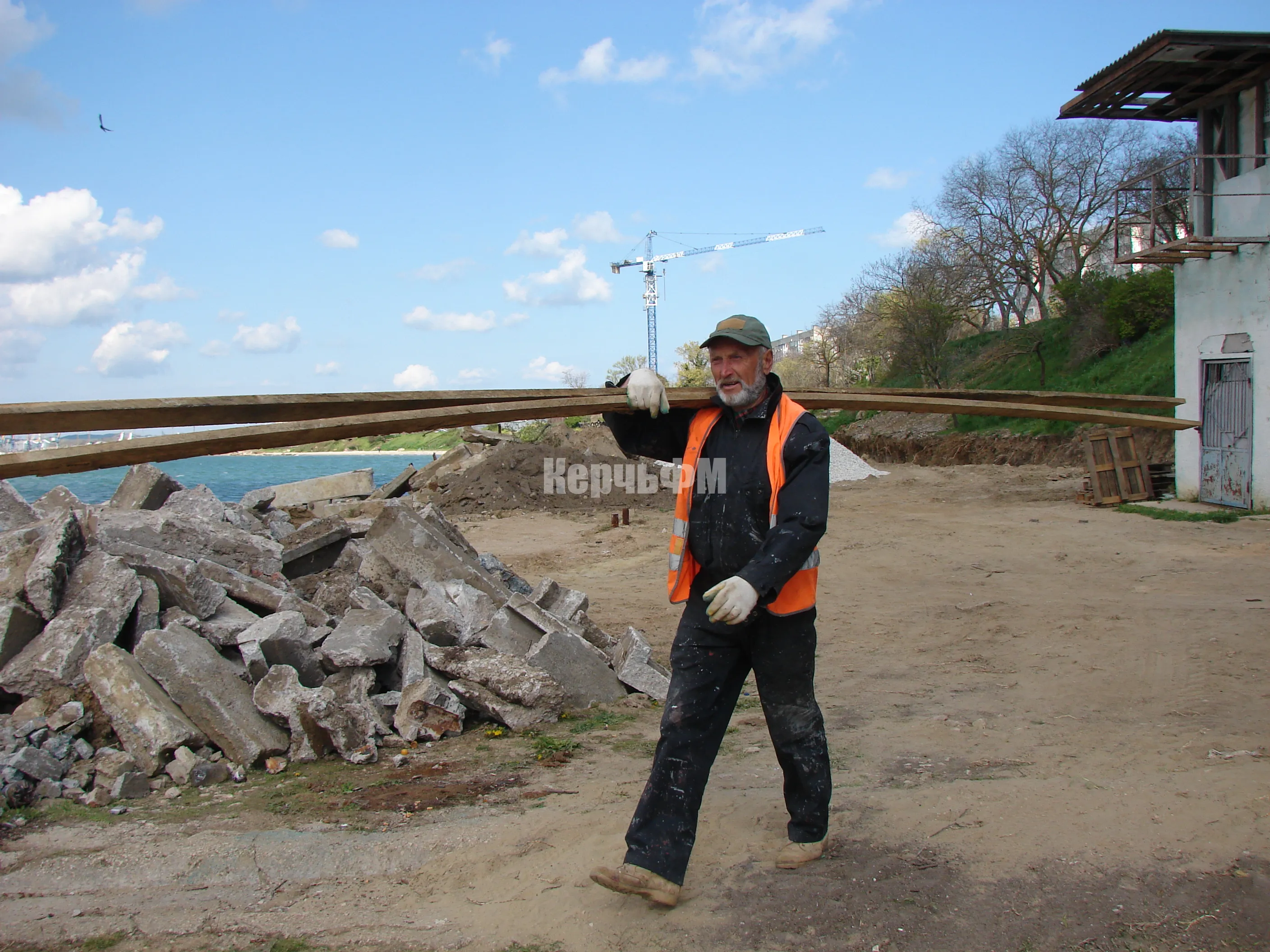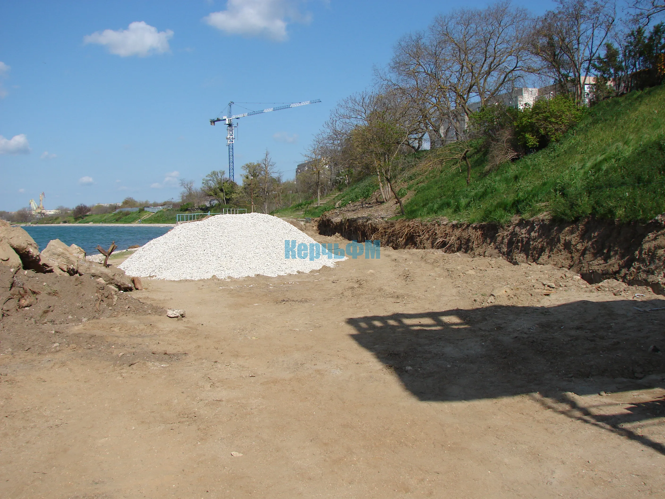 Сегодня рабочие продолжают готовить траншеи под бордюрный камень на спуске к морю.
