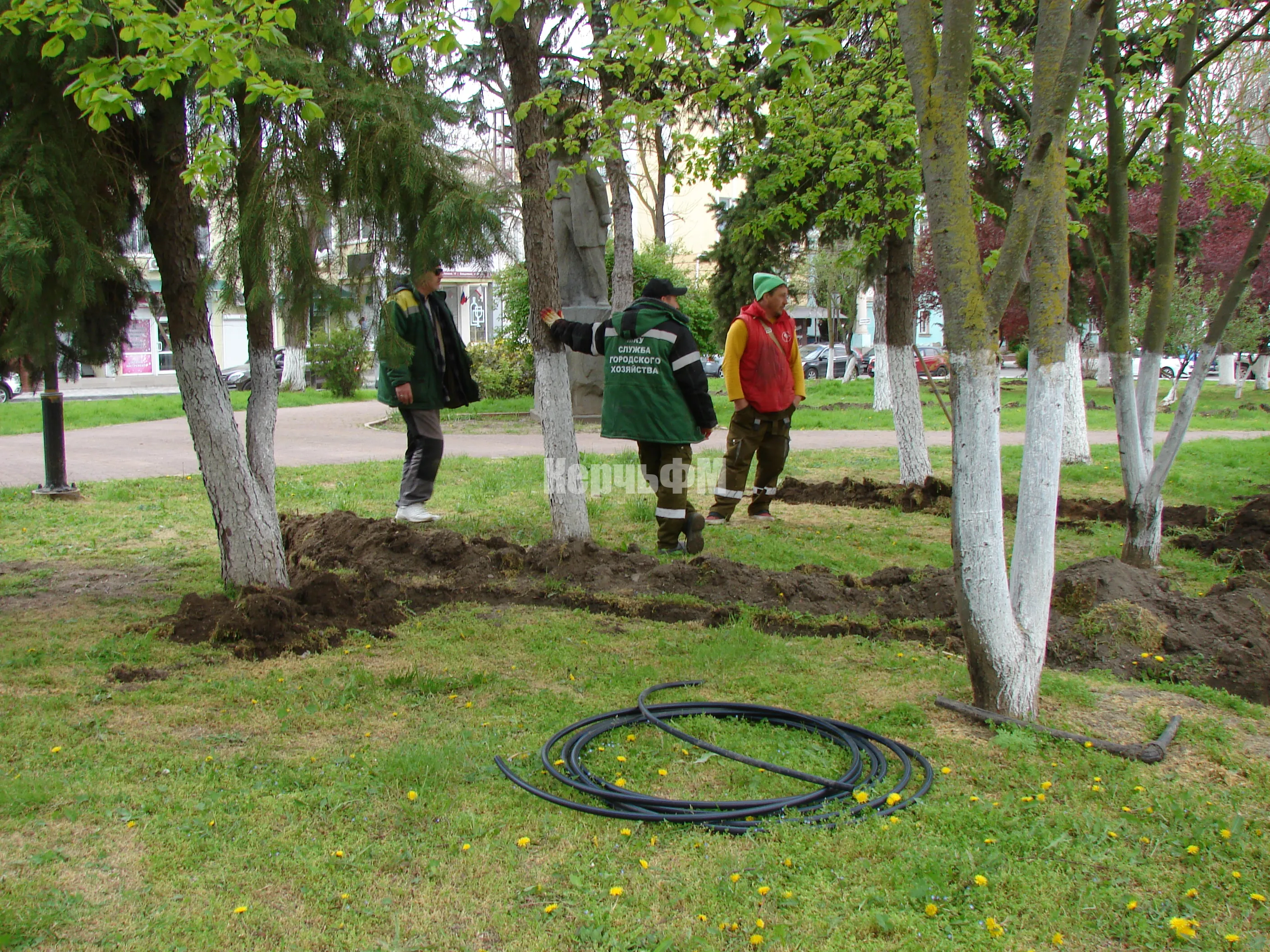 Специалисты Службы городского хозяйства продолжают работы по монтажу автоматической системы полива в сквере Дубинина.