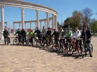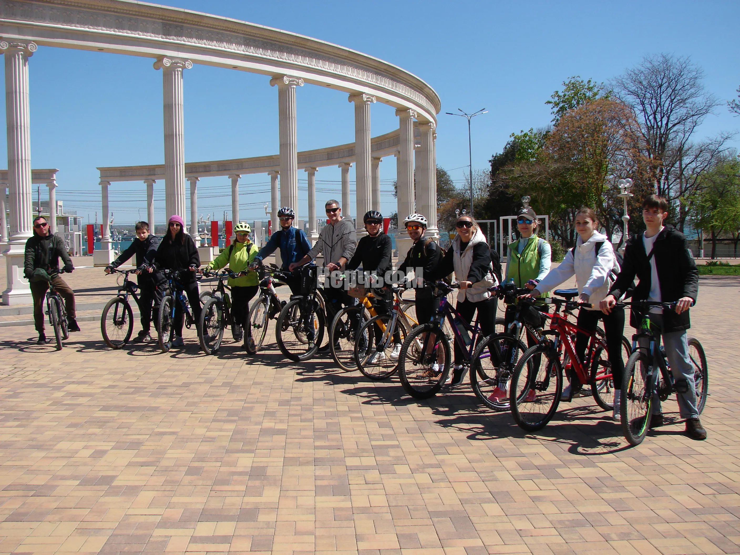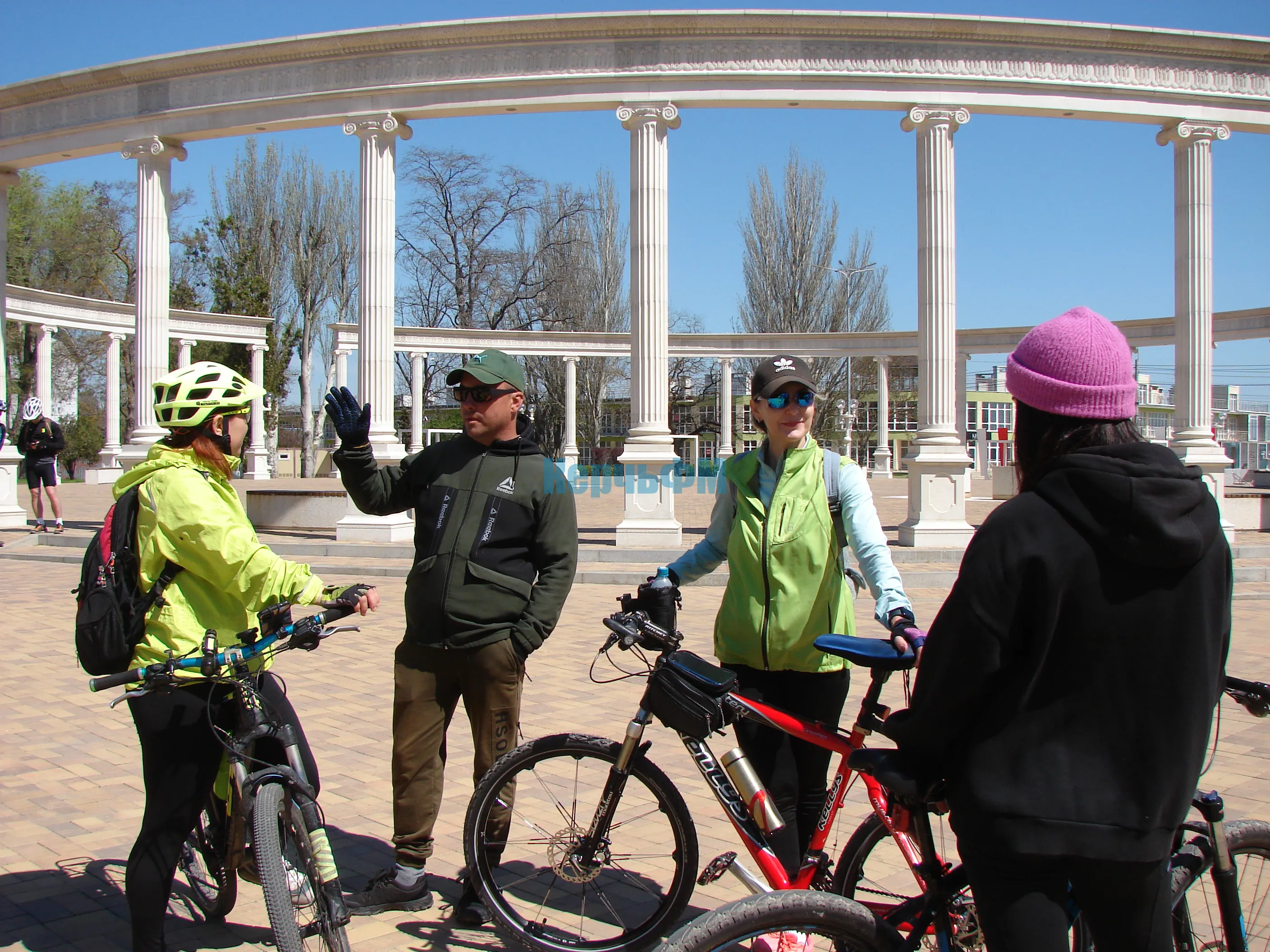 Керченские велосипедисты собрались сегодня утром у колоннады, чтобы совершить очередную велопробежку по окрестностям города.