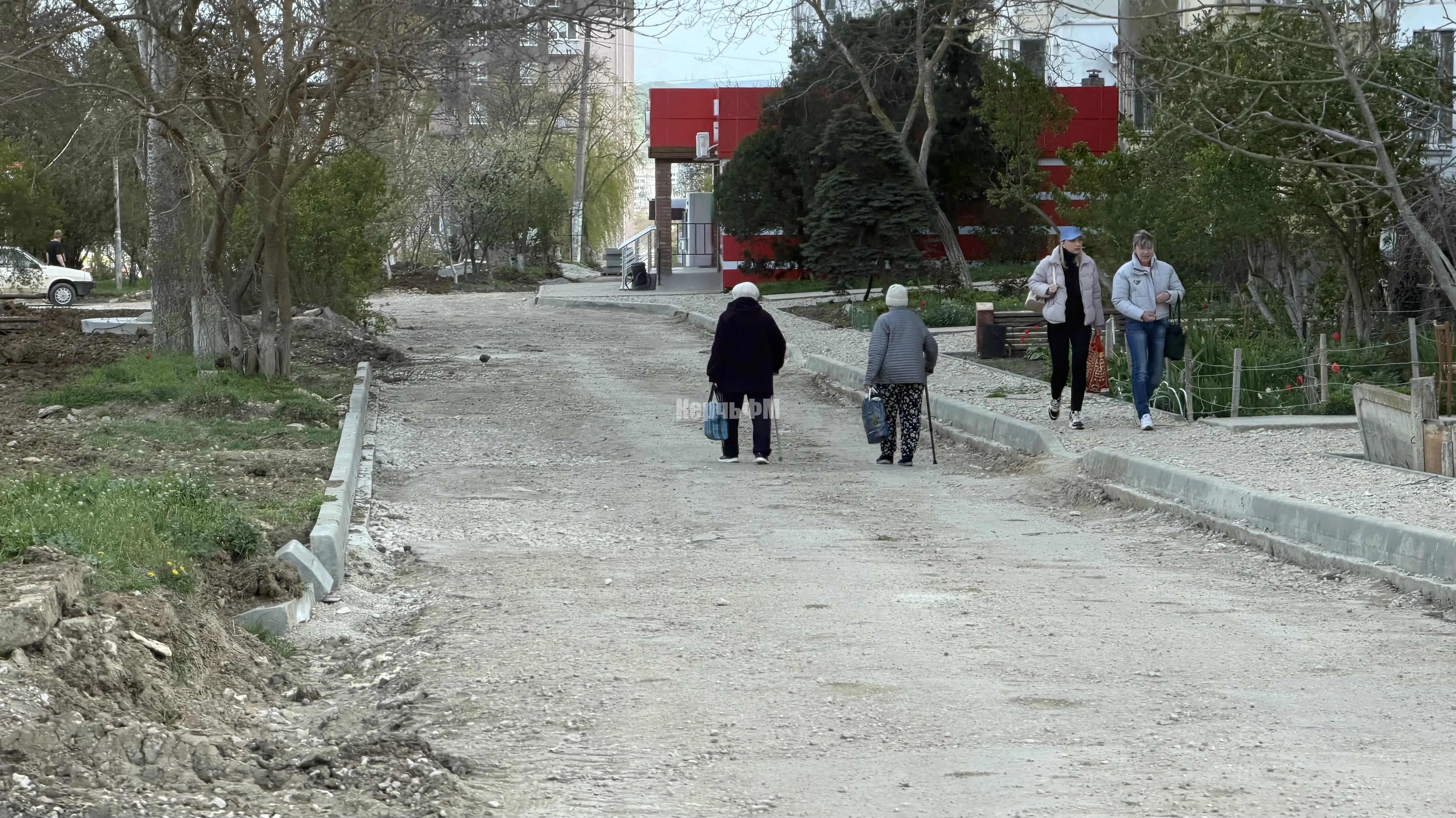 Тротуары уже подготовили к асфальтированию. Пока пешеходам приходится передвигаться по крупному щебню, что очень неудобно.