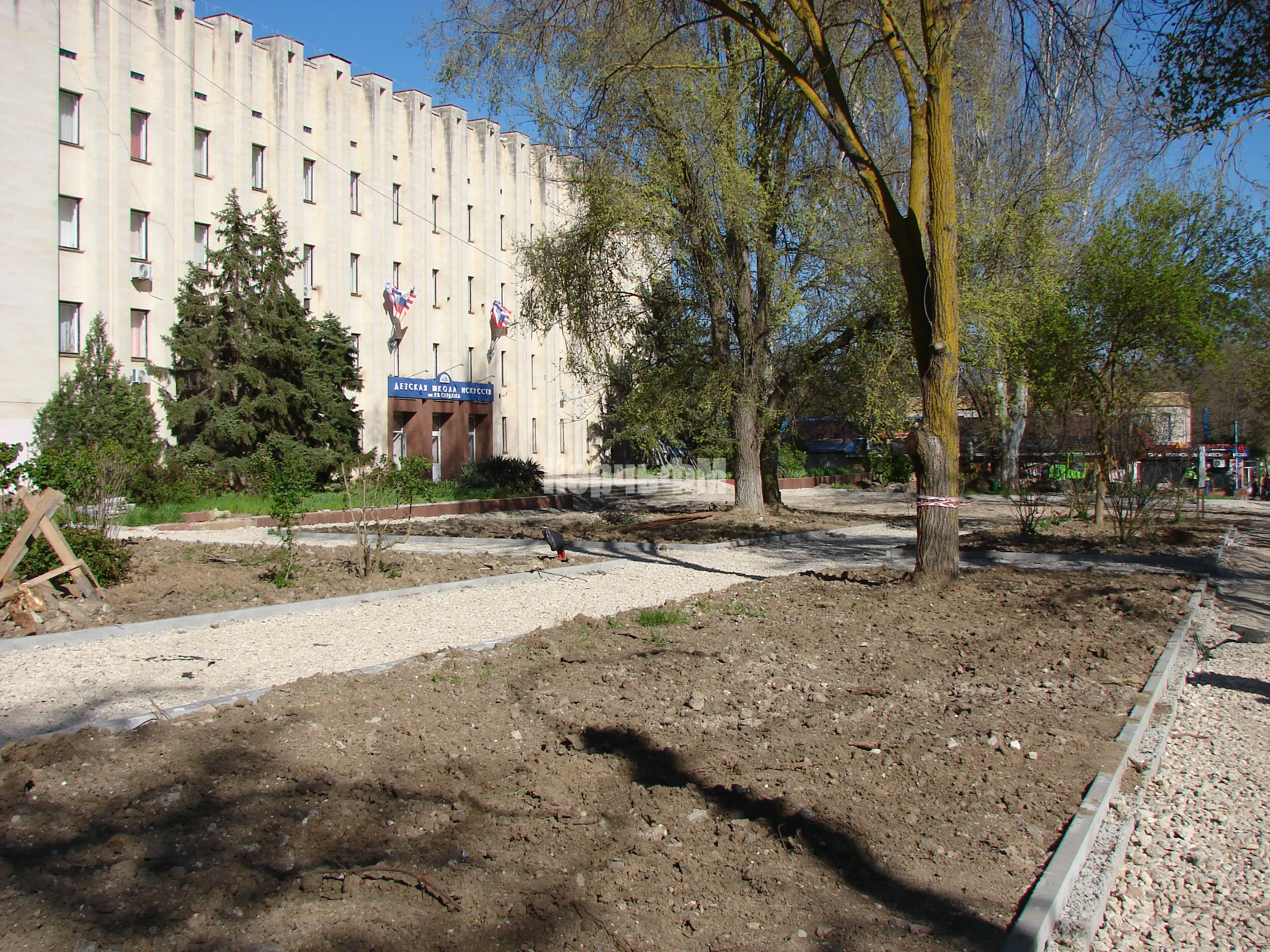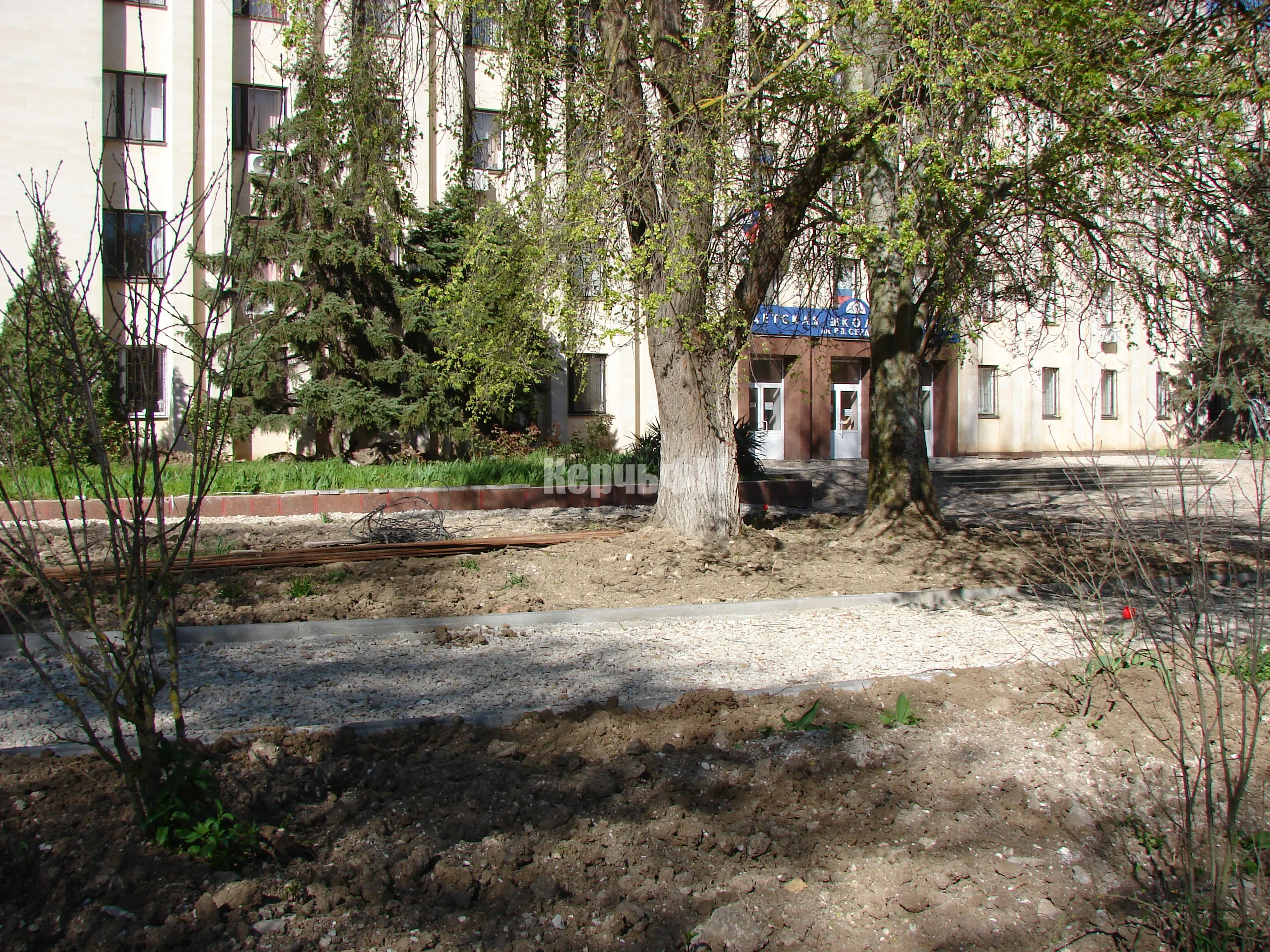 Благоустройство территории у Школы искусств им. Р. Сердюка, начатое сразу после новогодних каникул, темпы пока не набирает.