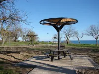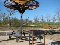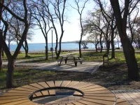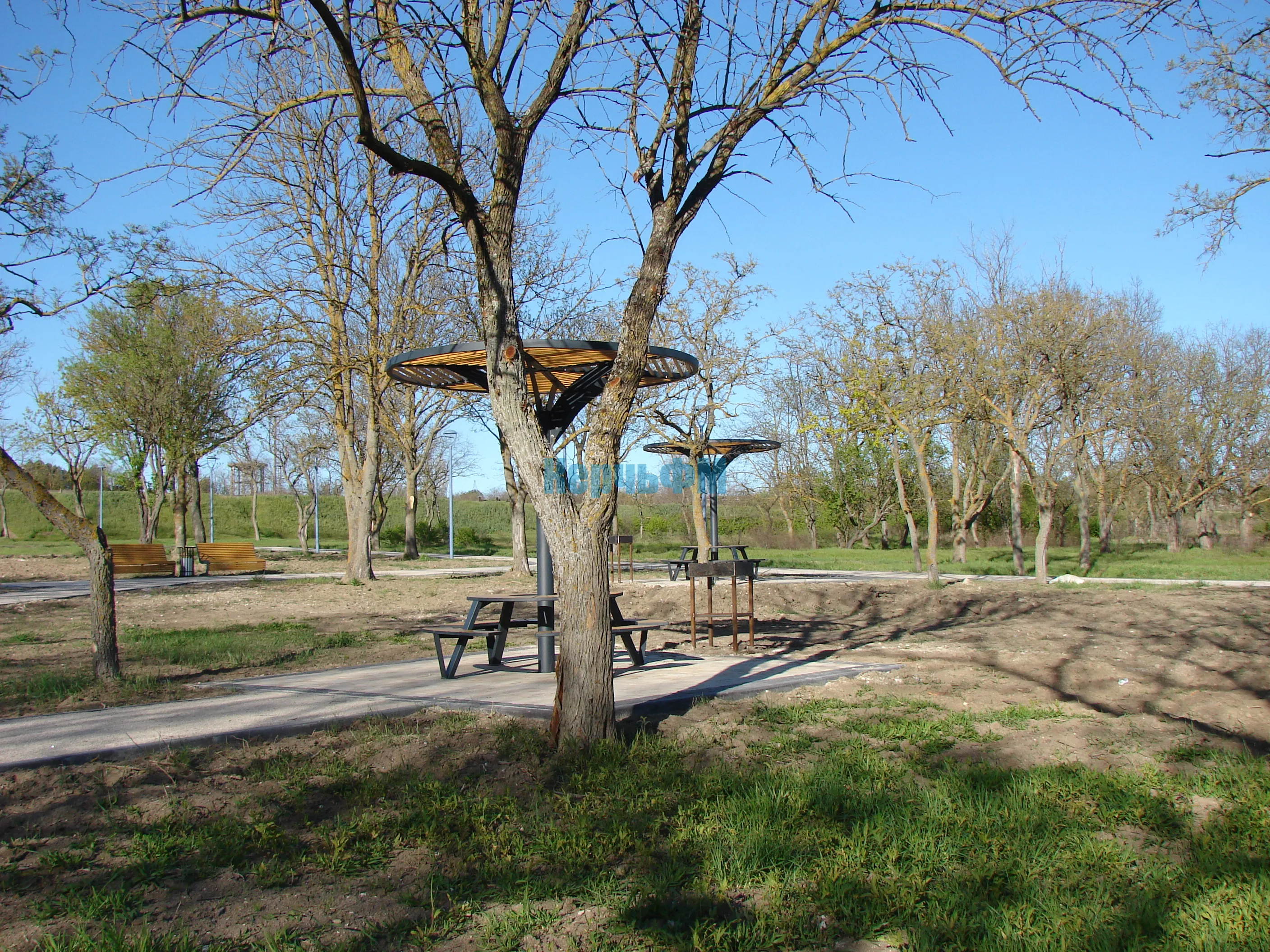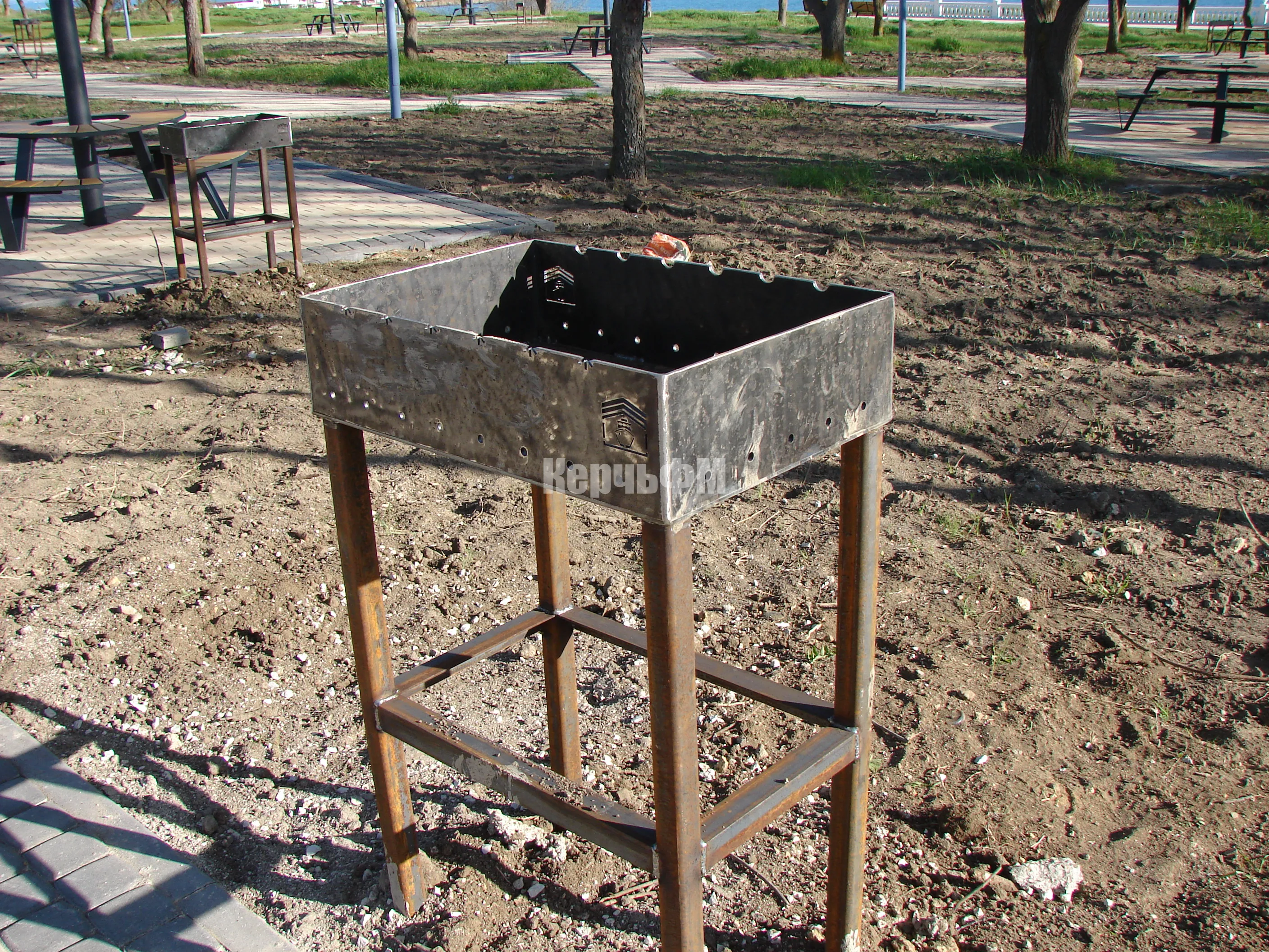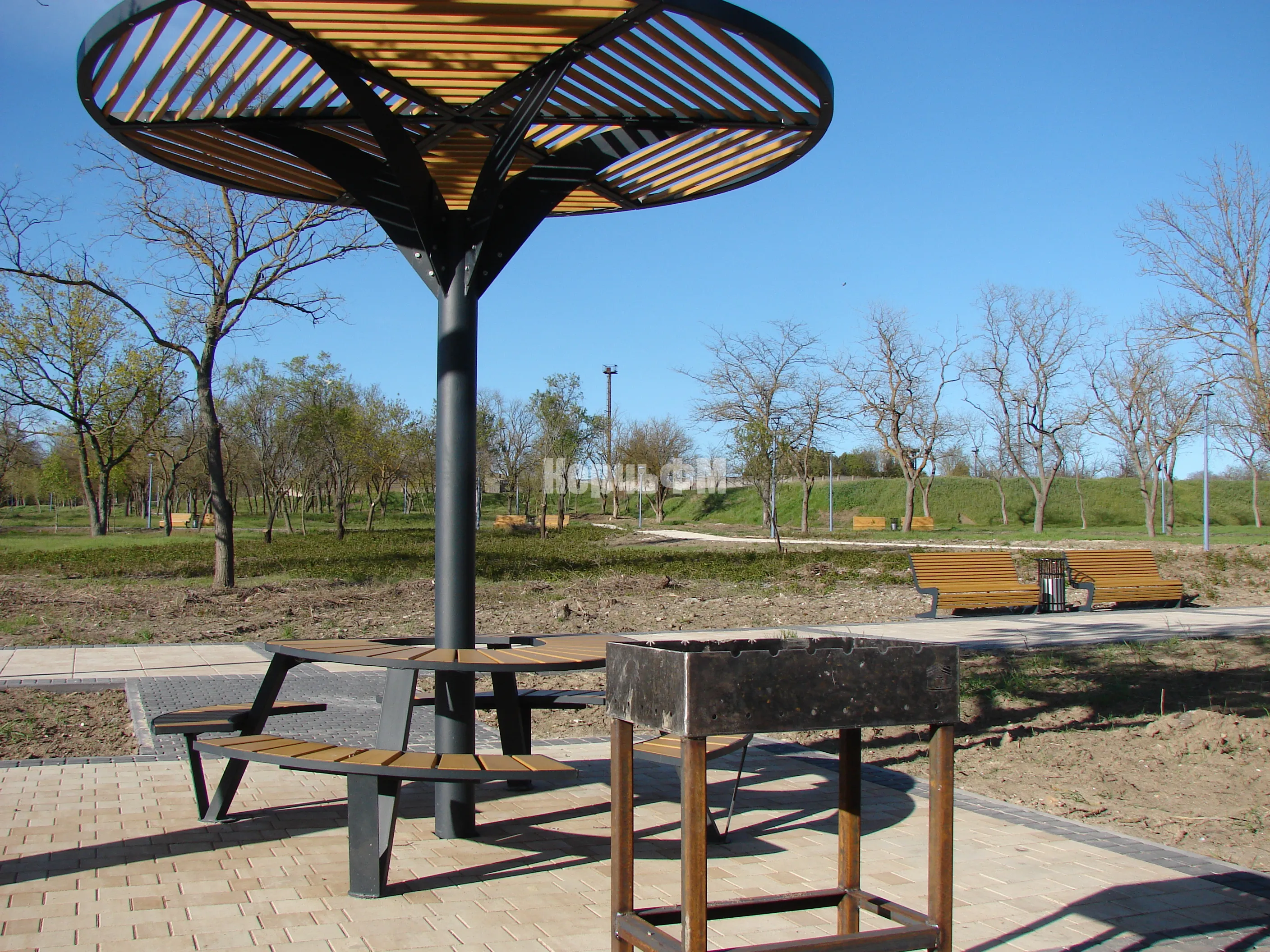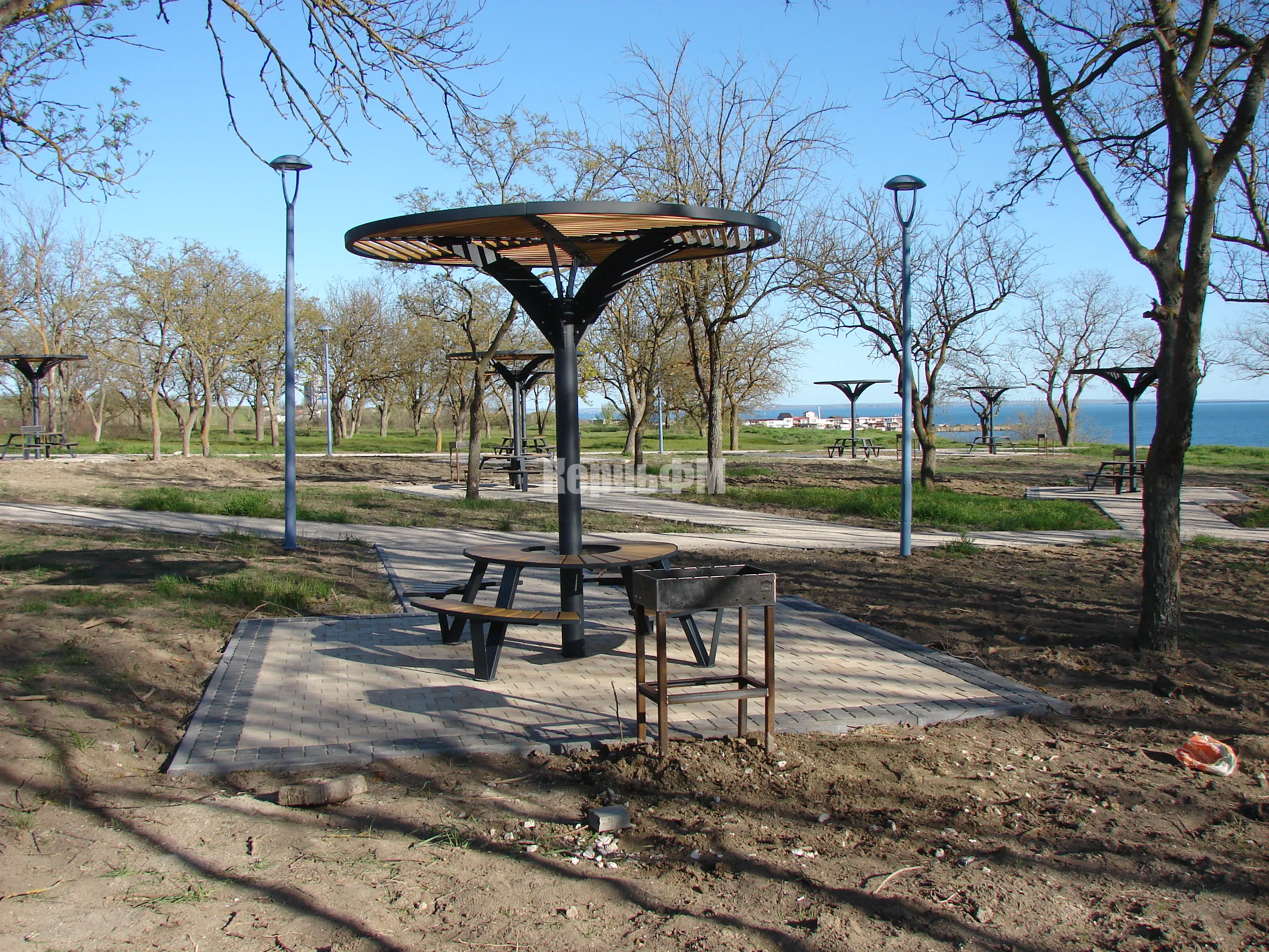 Слева от центральной аллеи Приморского парка, возле столиков с теневыми навесами, установили 11 мангалов.