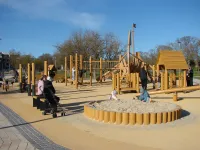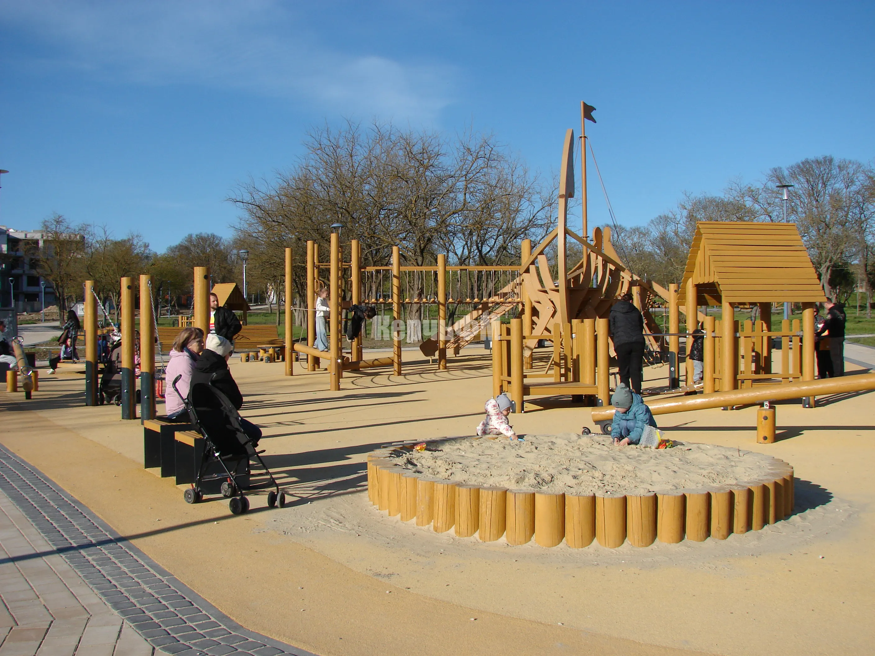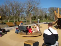 Территория парка очень большая и добраться до детских площадок, подъехав сбоку почти к середине парка с маленькими детьми, было бы очень удобно.