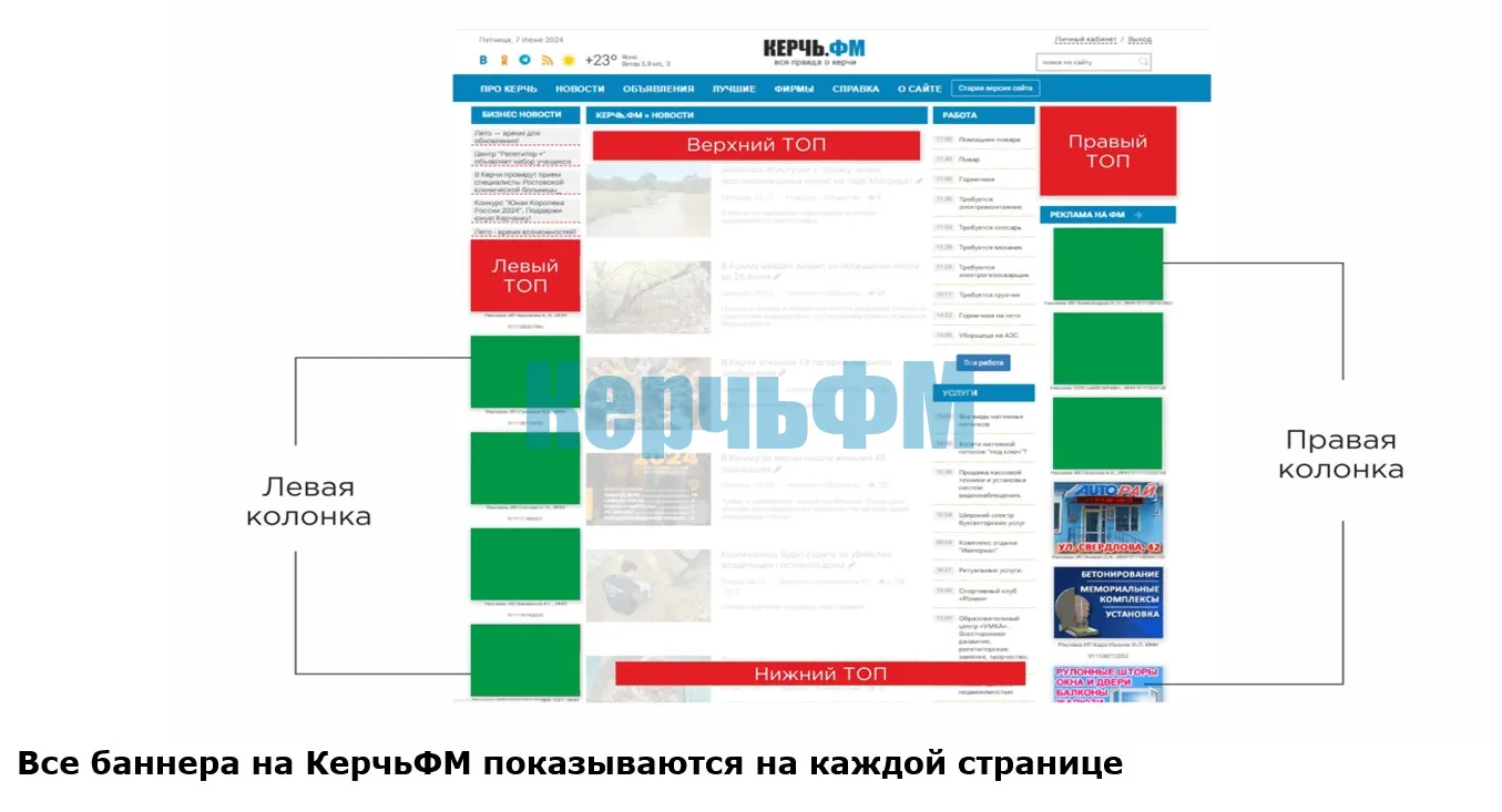 Перечень рекламных мест, которые вы можете арендовать на сайте Керчь.ФМ