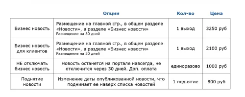 Бизнес новости размещаются сроком на 30 дней, далее отключаются. На сайте доступна дополнительная услуга "НЕ отключать бизнес новость"